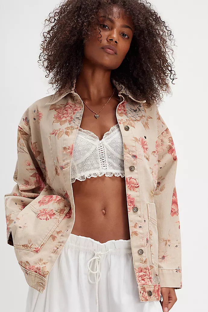 This chore-style jacket from We The Free is featured in an oversized, slightly-structured design with patch pockets and the perfect pattern, instantly adding intrigue to any outfit. A jacket we reach for all year round.