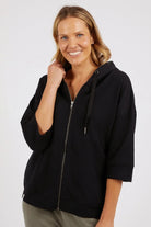 Crafted From Cotton Waffle This Relaxed Hoodie Features An Easy Zip-Up Front, Hood, 3/4 Sleeves And Is Slightly Shorted In The Body Length. Pair It With Your Favourite Lounge Pants And Sneakers For The Ultimate Off-Duty Look.