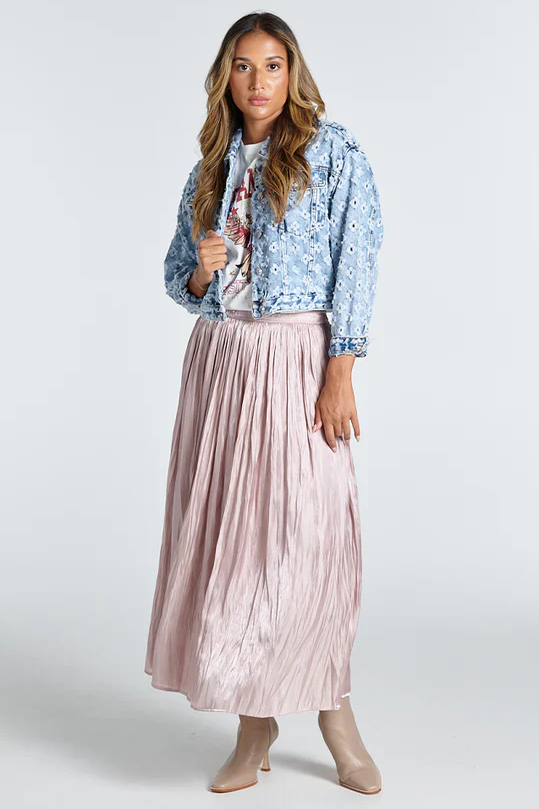 It's unique and eye-catching finish adds depth to this jacket, making it a stand out! It has a relaxed and casual vibe, perfect for pairing with jeans, skirts, or shorts.