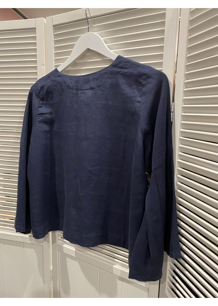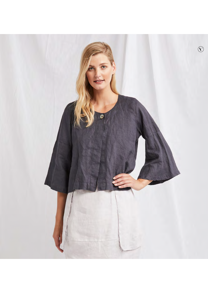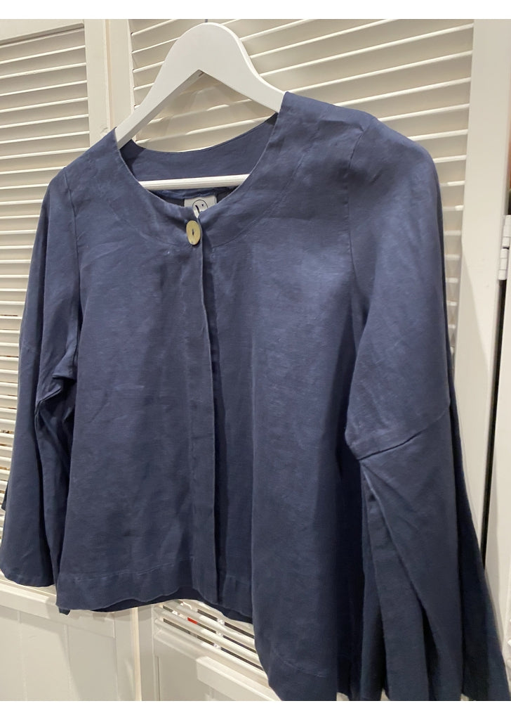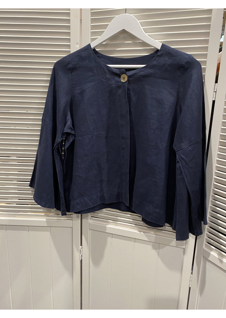 - Linen Jacket with one pearl button at neckline