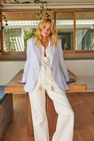 The Channing Jacket is styled to take you from the work commute to an evening out. Featuring 100% Linen, single button closure and patch pockets it’s as easy to care for as it is to wear. Also Available in Pink.