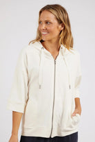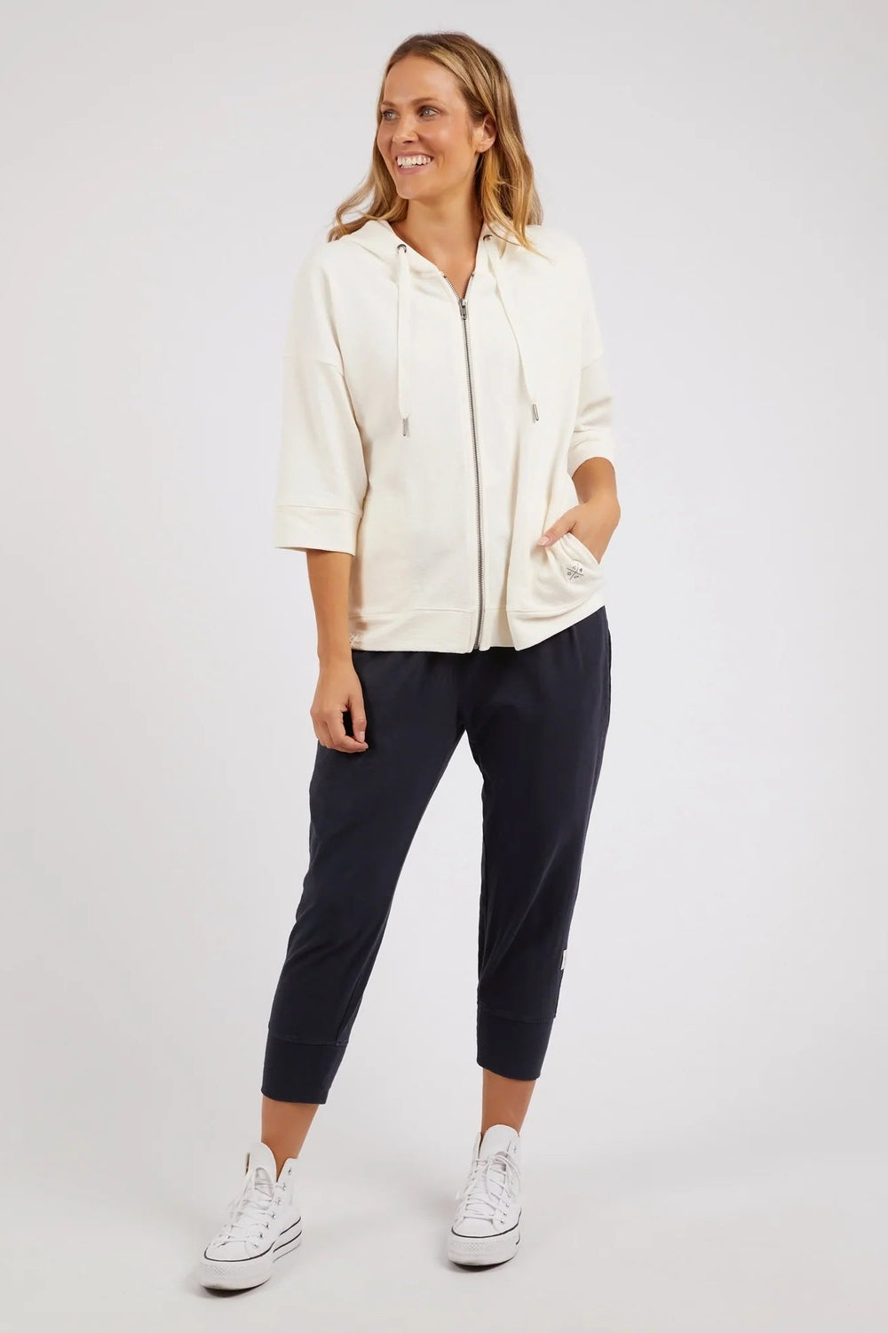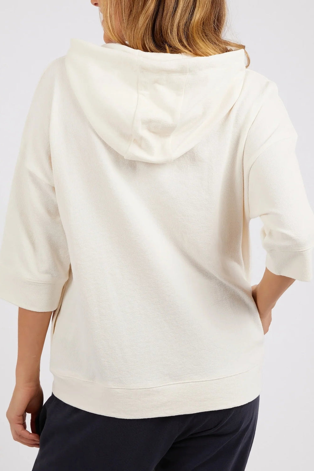 Crafted From Cotton Waffle This Relaxed Hoodie Features An Easy Zip-Up Front, Hood, 3/4 Sleeves And Is Slightly Shorted In The Body Length. Pair It With Your Favourite Lounge Pants And Sneakers For The Ultimate Off-Duty Look.