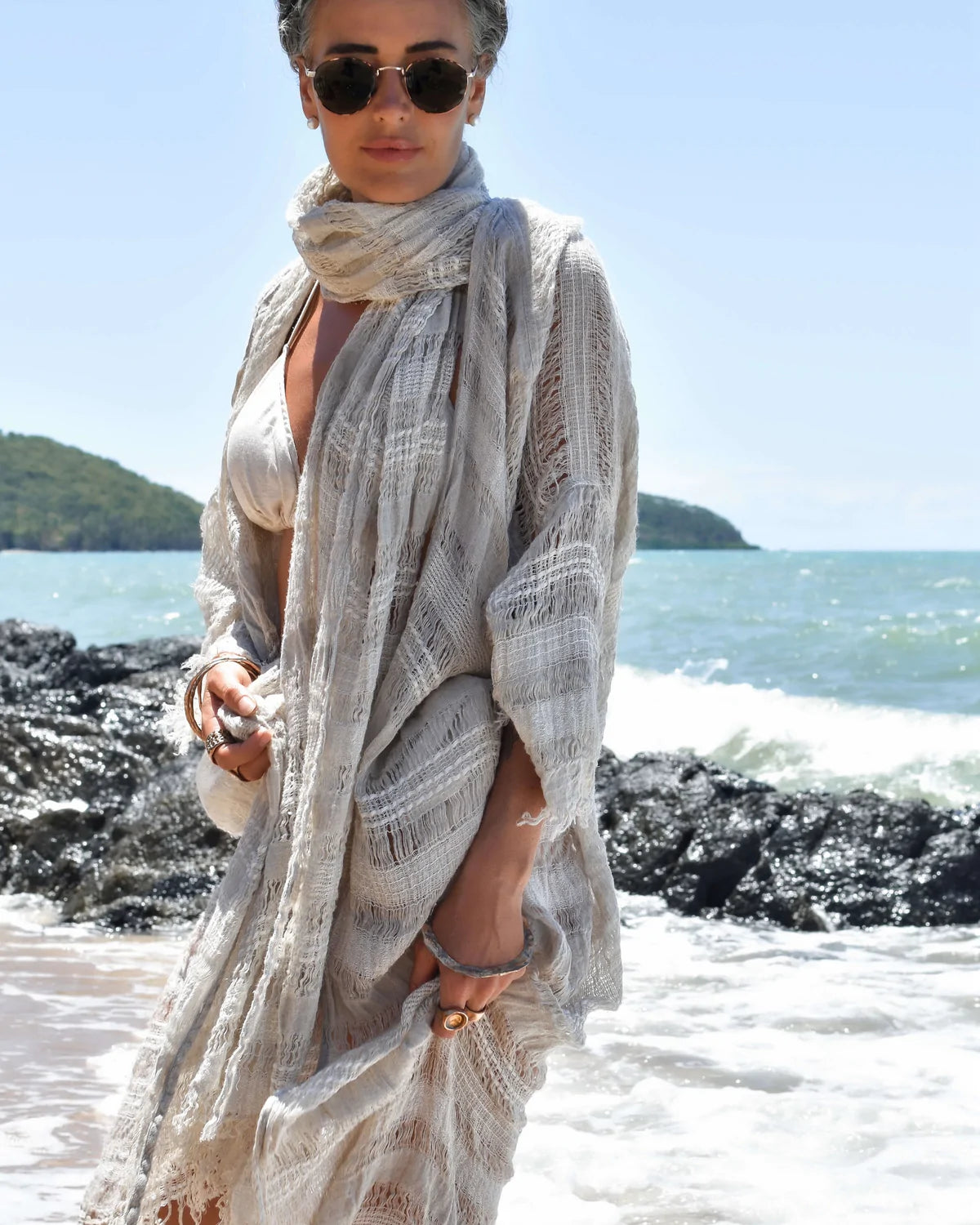 The Spolverino Torre Rete Pisa is a luxurious, lightweight open jacket crafted from a beautiful woven natural fabric. Its effortless design makes it a versatile layering piece that adds a touch of relaxed elegance to any outfit. Featuring a chic, fringed hem and loose fit, this jacket is perfect for adding texture and flow to your wardrobe. Wear it over casual looks for a laid-back vibe or pair it with more formal pieces for a sophisticated finish. Handcrafted in Italy, this piece embodies the brand’s commitment to quality and timeless style.