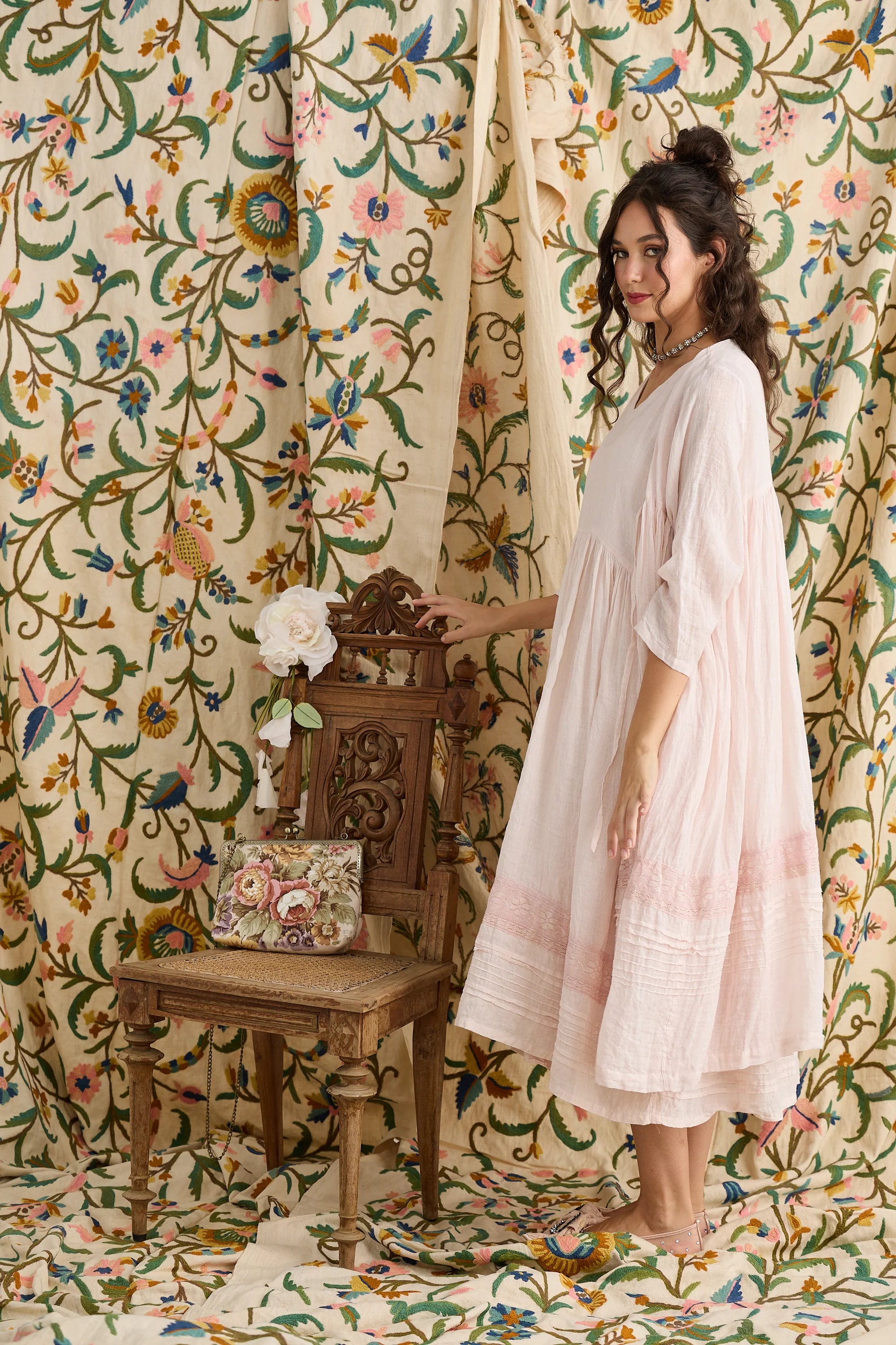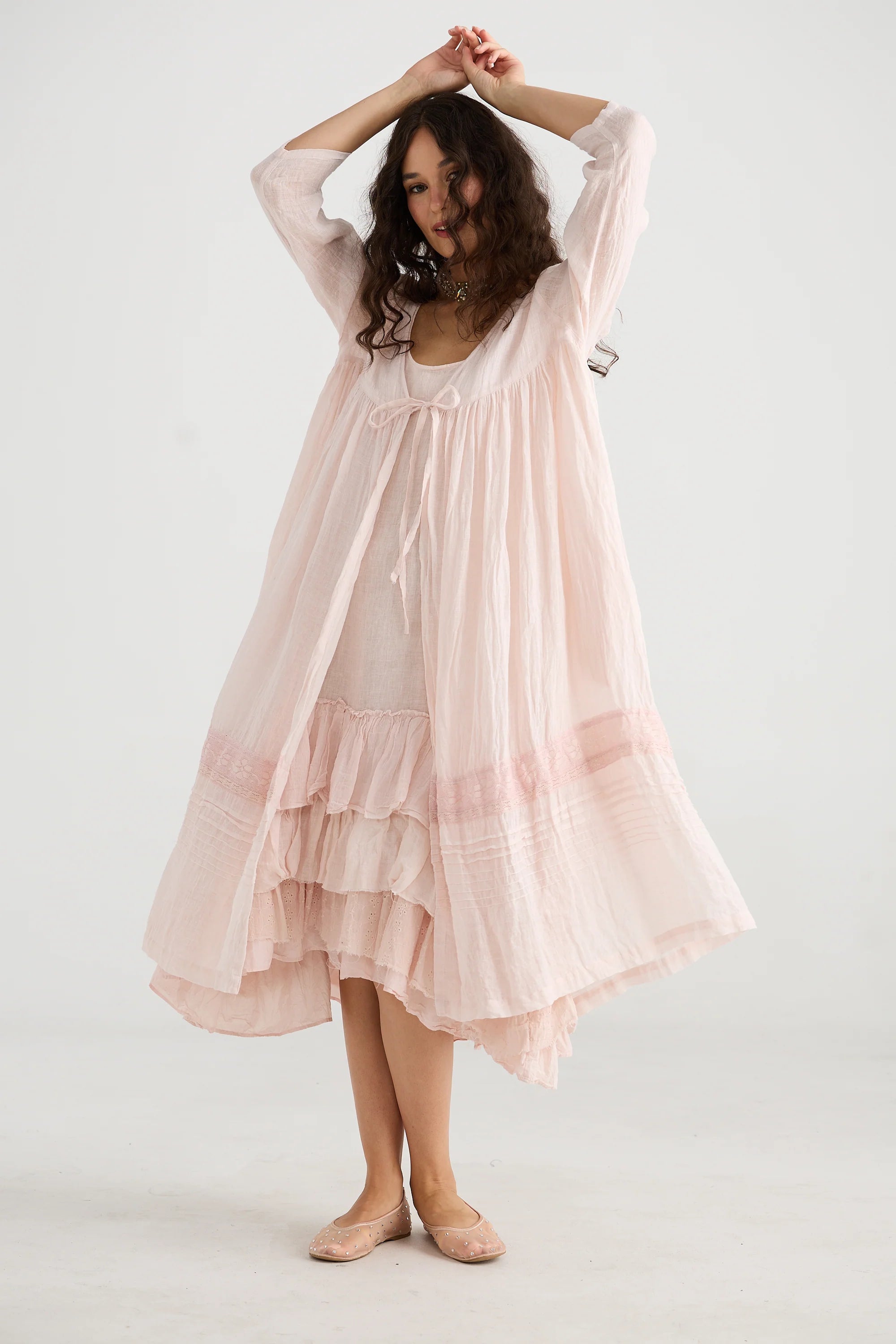 Enchantress Long Linen Gauze Coat | Powder Pink.