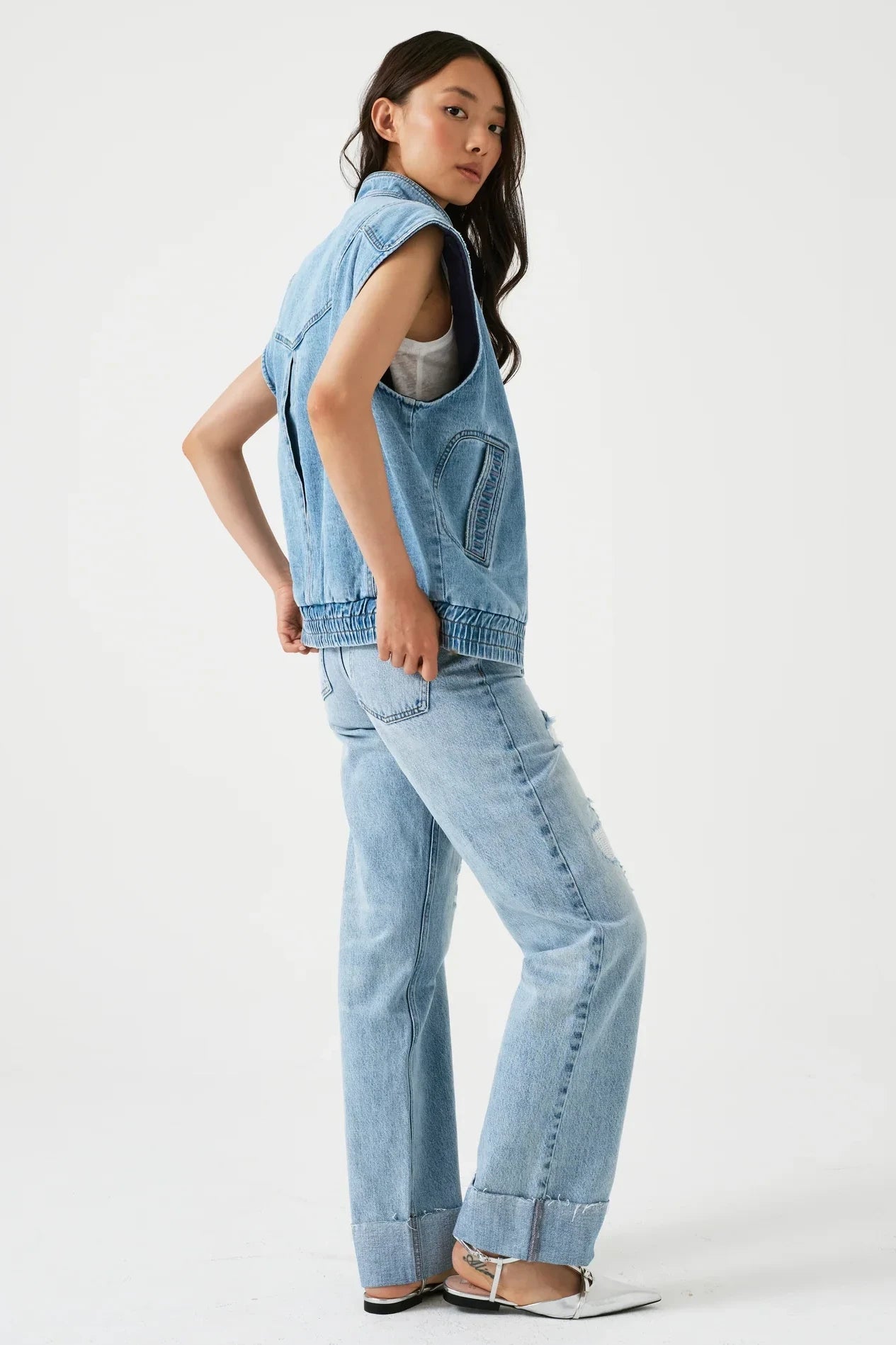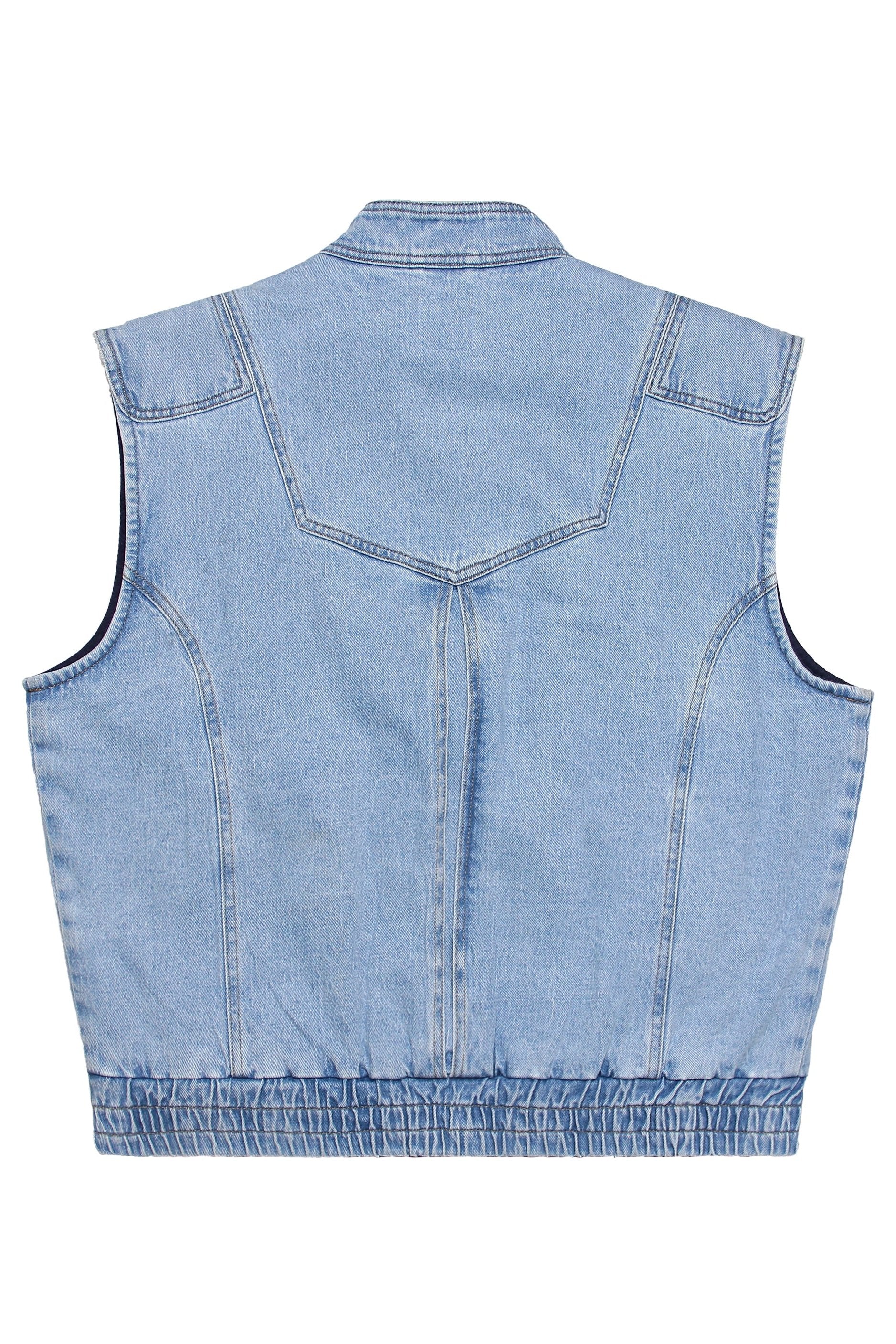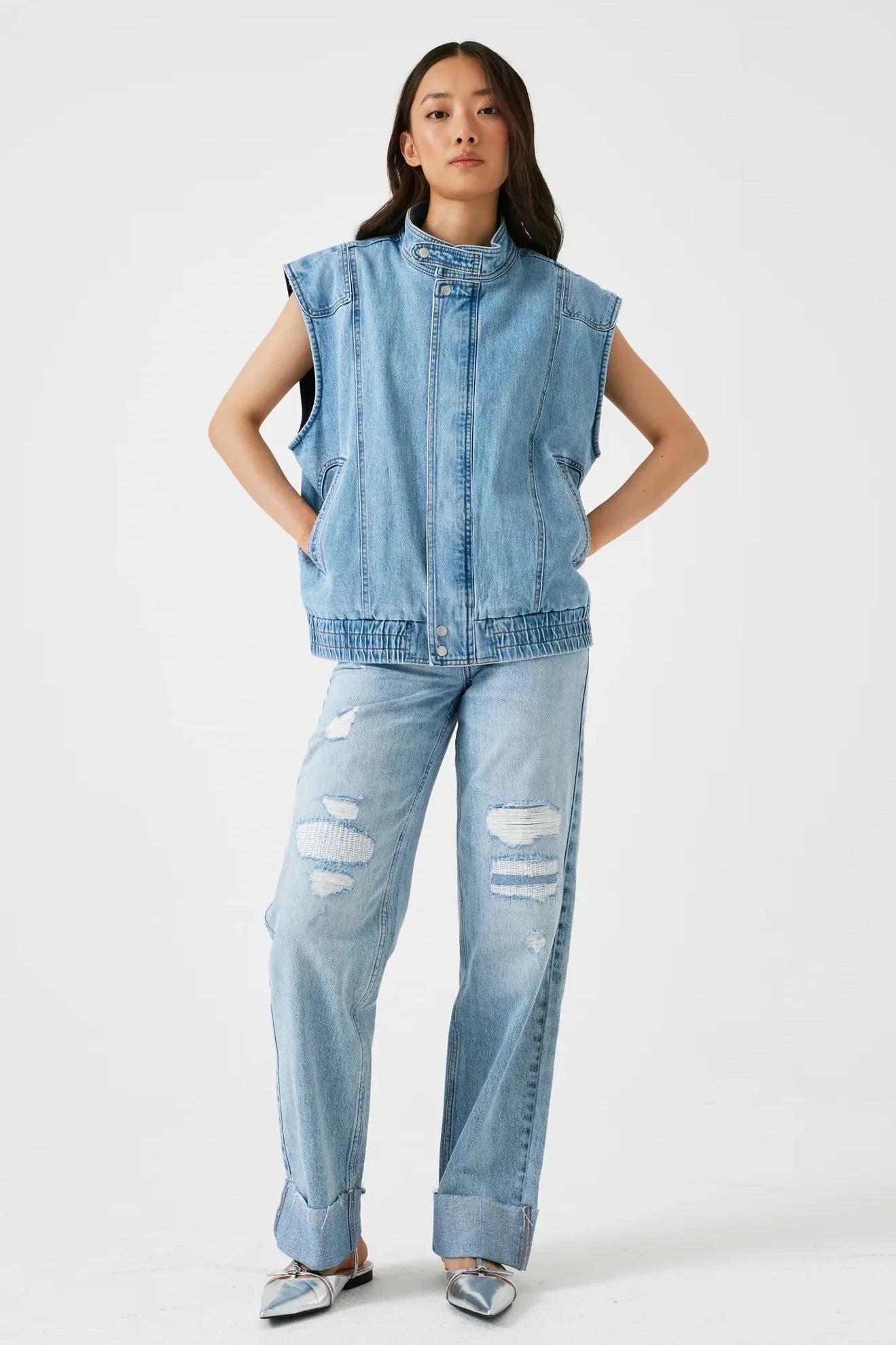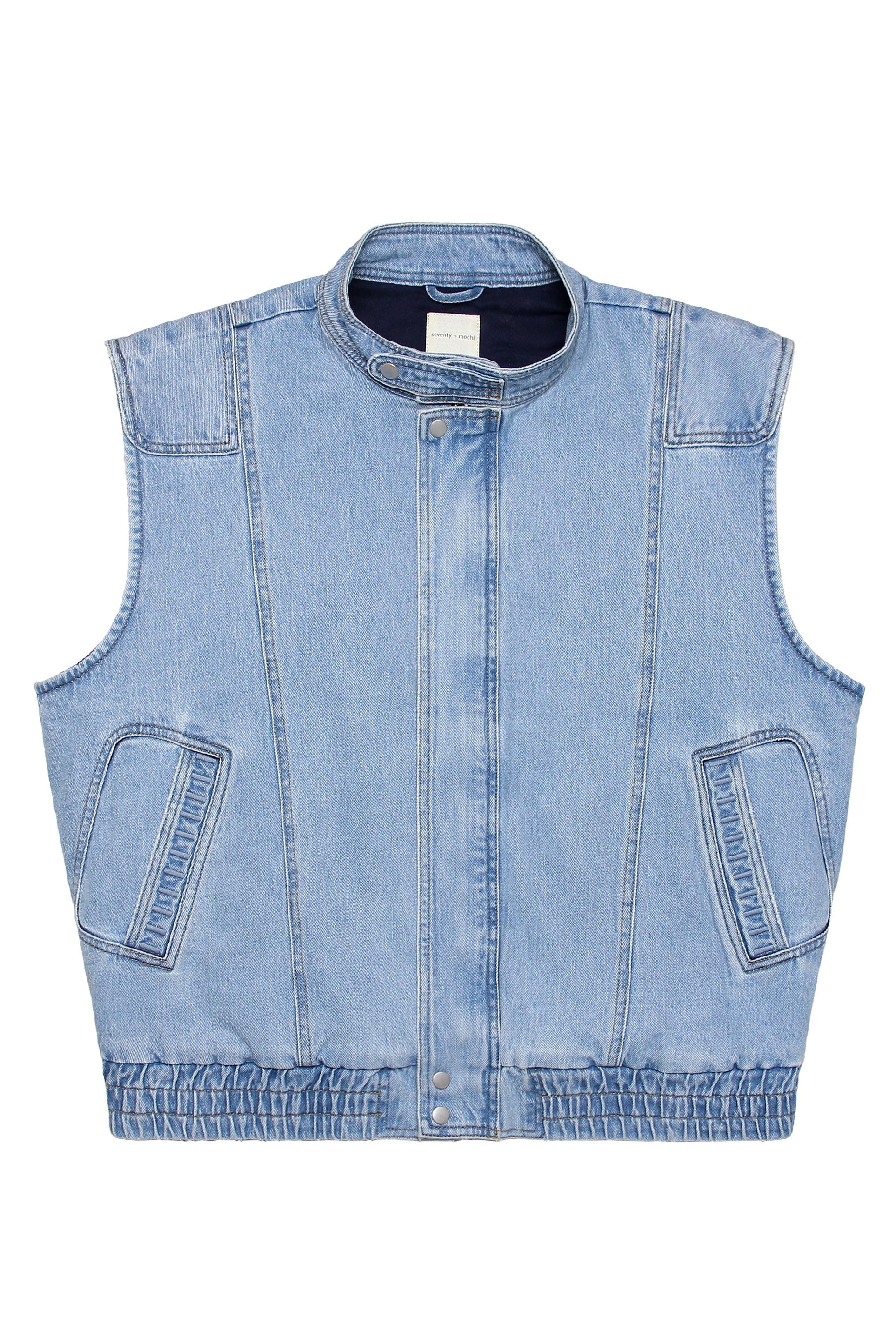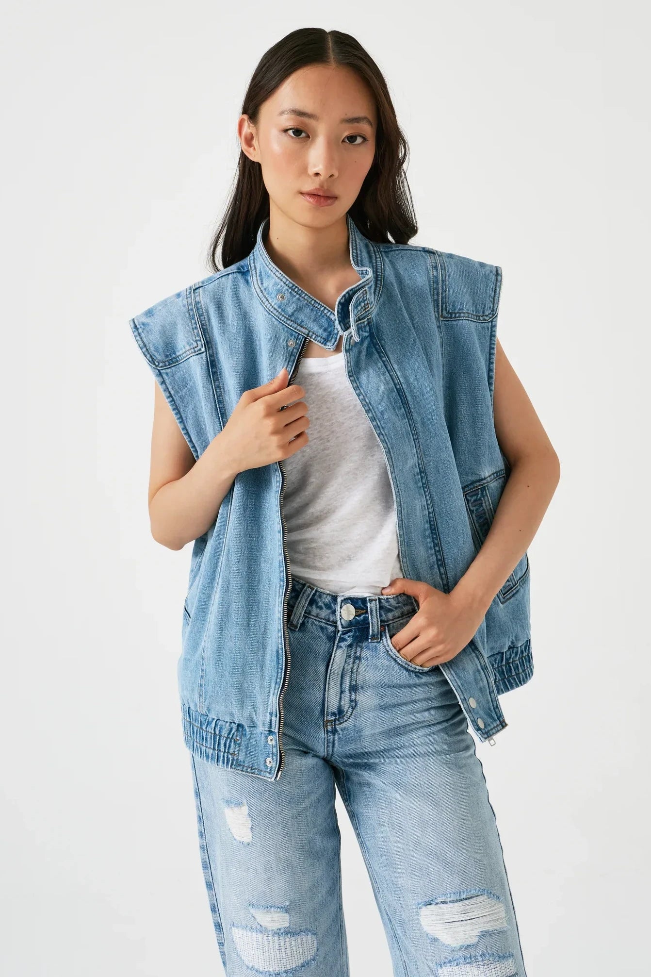 The iconic retro Juno Jacket, now reimagined in a sleeveless oversized style.