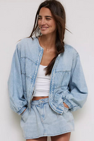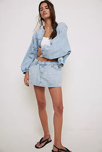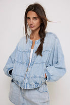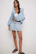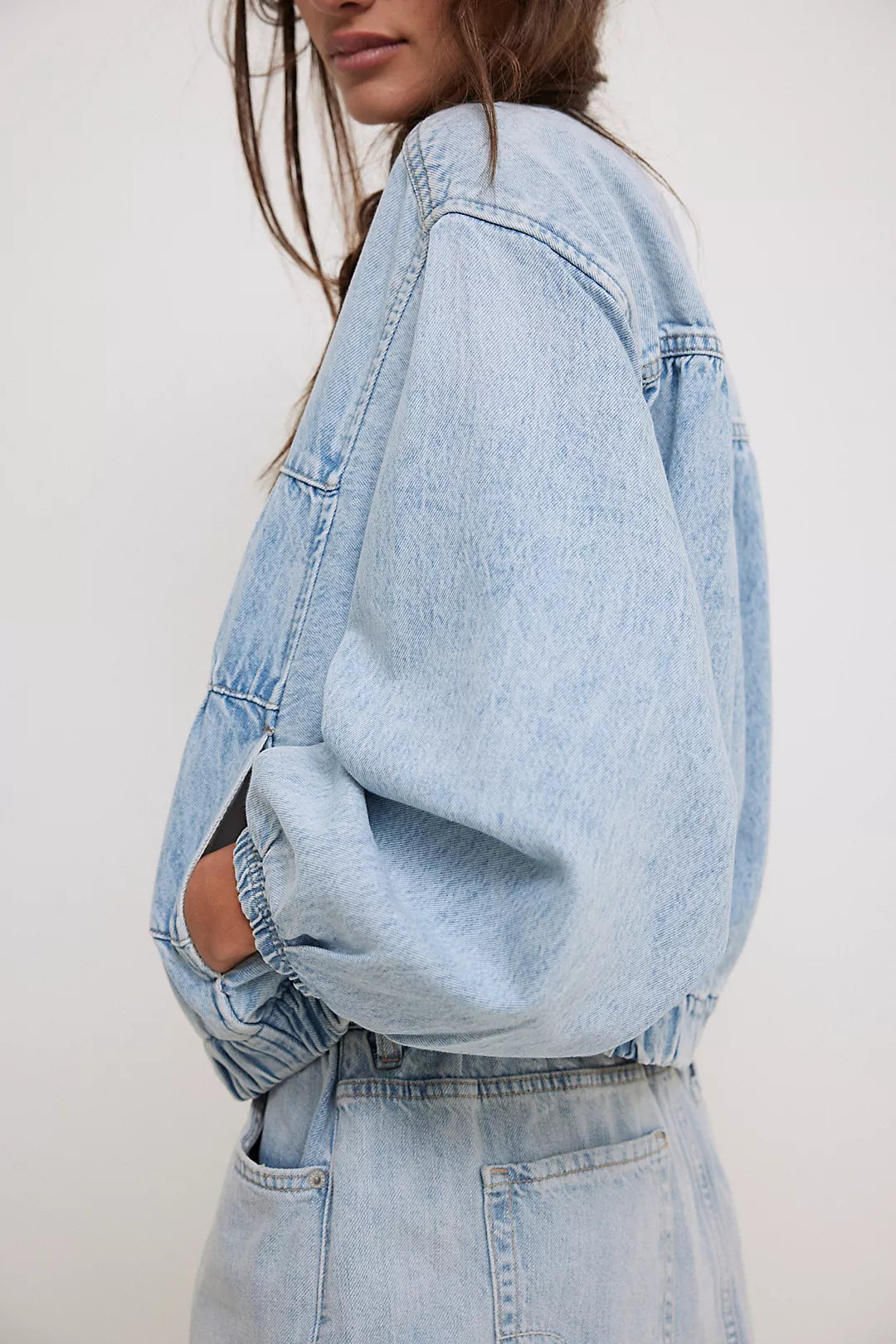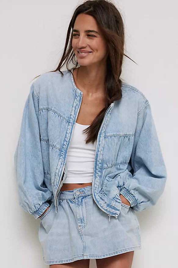Ruched seams and hems give this cropped denim jacket from We The Free the perfect touch of texture. A contemporary take on a classic vintage silhouette.