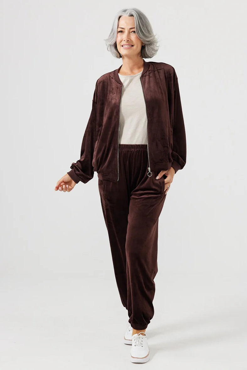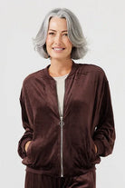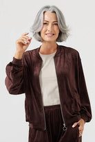 The super stylish Liza Bomber will keep you looking on-point this winter! Cut from a soft satin houndstooth fabric and complete with ribbed cuffs and hemband, this relaxed layering piece is the perfect way to finish off any outfit.