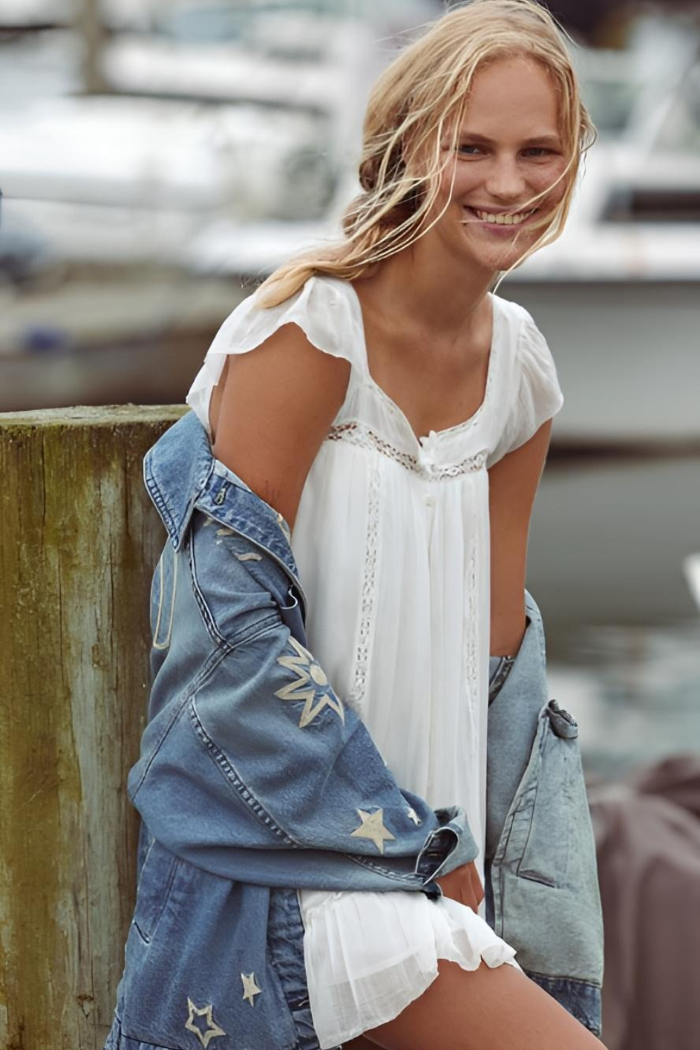 Effortlessly cool in an oversized silhouette, this laidback jacket from Free People's in-house brand, We The Free, is featured in a button-down style with a collared neckline and pocket detail at the chest. Perfect layered over a dress or paired with your favorite graphic tee, this effortless jacket has endless ways to wear.