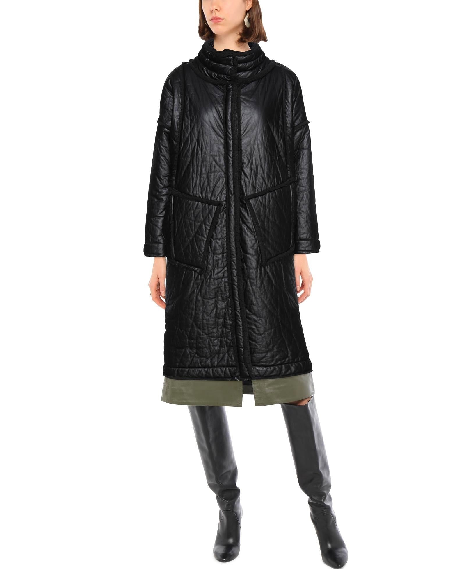 coated fabric, no appliqués, solid color, turtleneck, single-breasted , long sleeves, fully lined, snap buttons fastening, multipockets