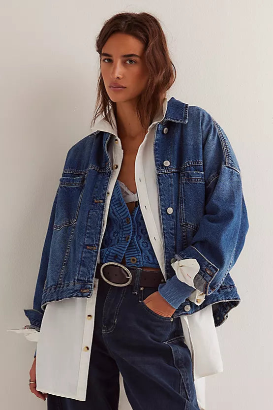 Take your denim jacket game to the next level with this so cool version featuring dropped shoulders for shape and defined pleating at back for an added special, swingy touch.