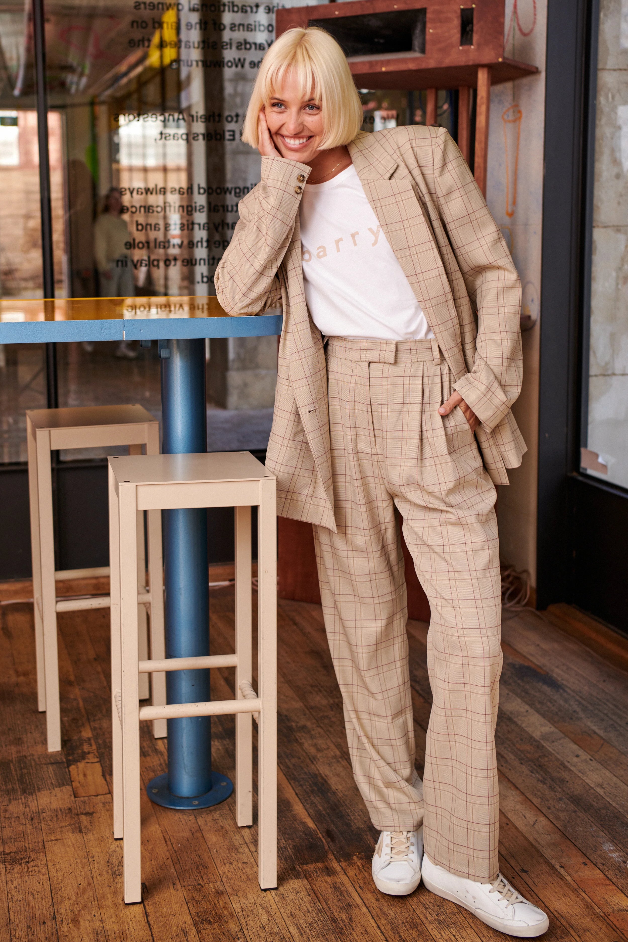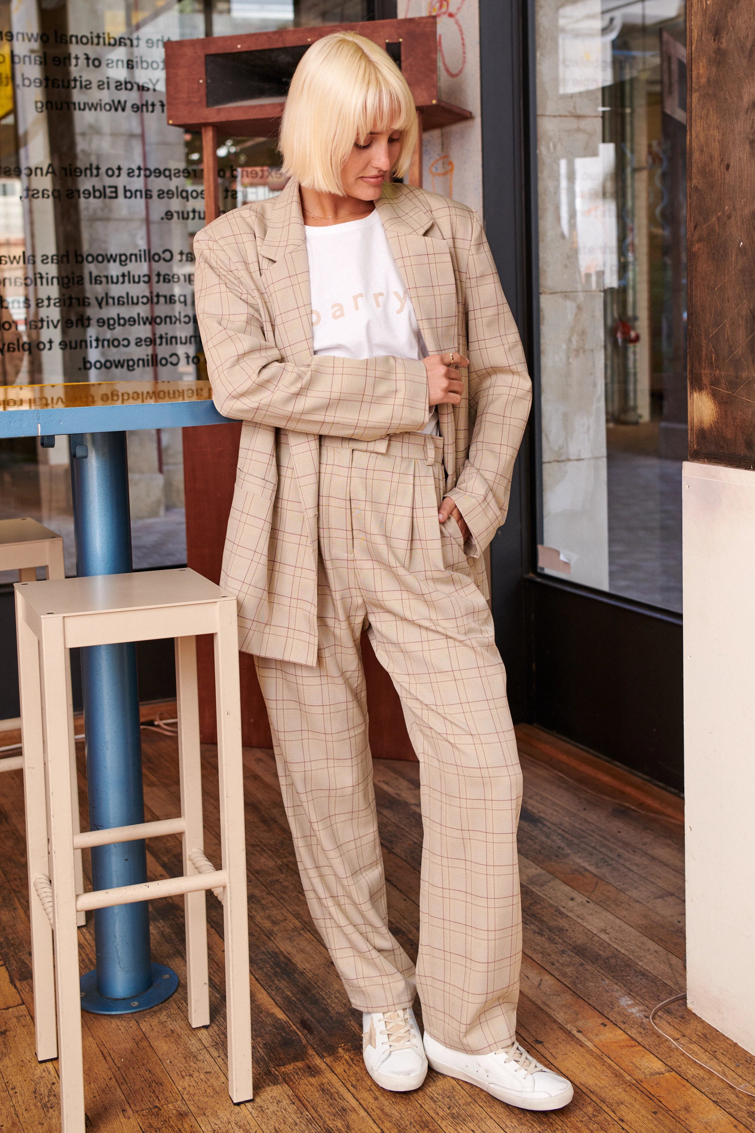 The polished yet relaxed feel of the Lark pant makes them versatile from day to night. Cut from flowy check fabric, they're designed to sit high on the waist and have straight legs with pleats for added volume. Show off the cropped hem with sneakers or loafers. Style yours with a T-shirt or blazer.