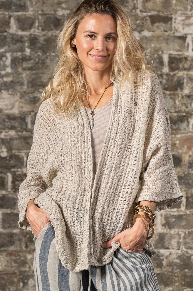 The Shrug Giacca Atena in Latte Maremma is a sophisticated piece of artisanal craftsmanship from La Bottega di Brunella. This shrug exudes elegance with its delicate fabric and is designed to pair seamlessly with other garments in its matching set, offering versatility and cohesion to your wardrobe. The soft texture and neutral "Latte" tone make it an ideal layering piece for a refined yet relaxed look, perfect for embracing the effortless chic of the Amalfi Coast.