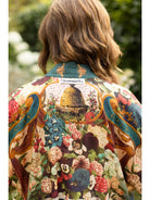 The golden bees on the trim are part of an embossed book cover from the Victorian era. The phrase “love is the only gold”, and the words “stay gold” on the banners at the shoulders are a powerful message of what really matters! Stay true to yourself and share your kindness with the world — you will be all the richer for it :) 100% viscose (derived from plant fibres such as wood and bamboo).