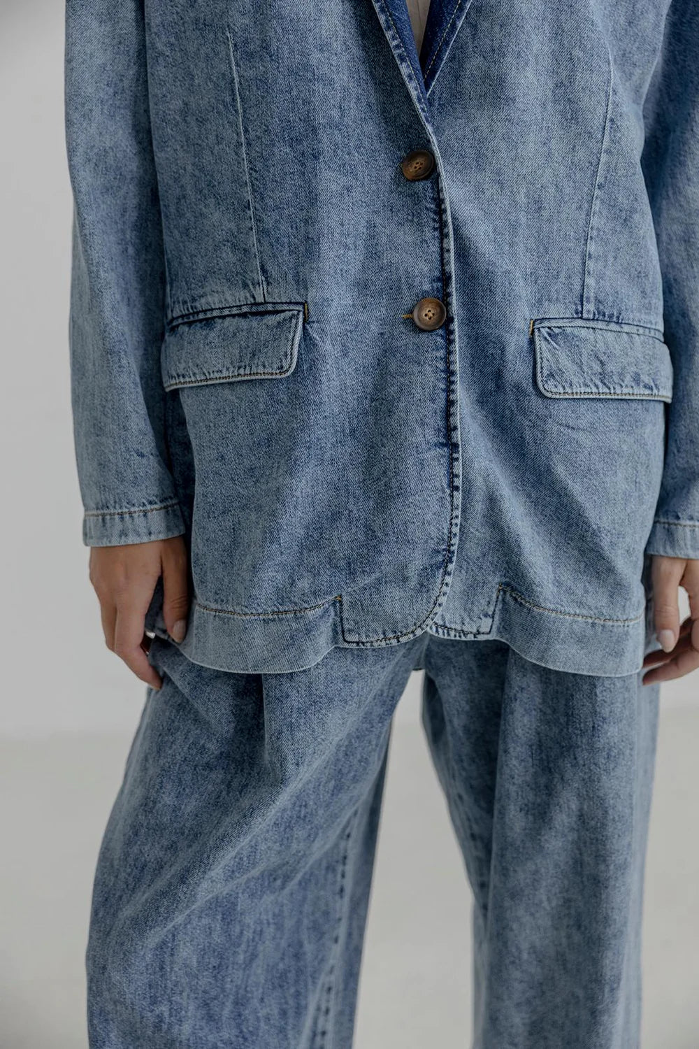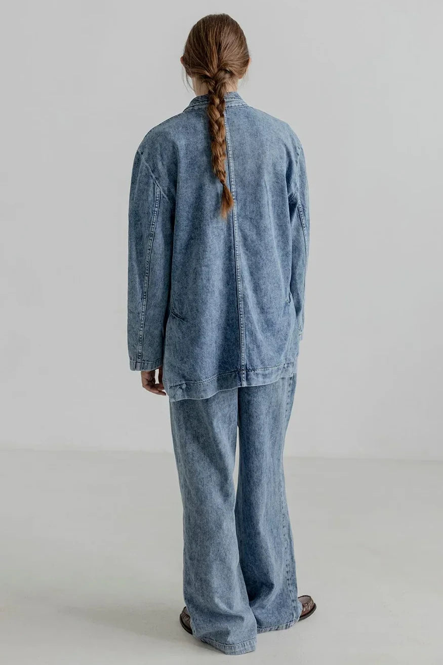 TABBY is a new denim blazer in a super soft organic cotton quality. The blazer has a relaxed fit, two-button closure and two welt pockets with flaps at front.