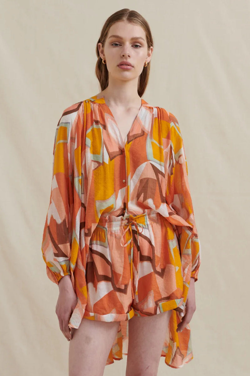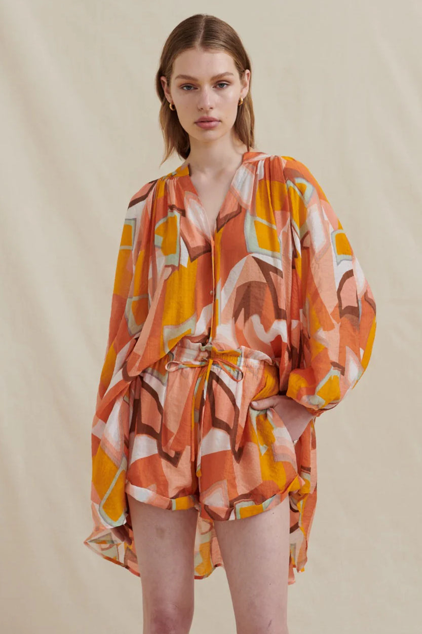 Experience a hint of the sun on your skin with our Grace Shorts in Sunset. With their vibrant orange warm hues, reminiscent of a glorious aperol spritz, and full elastic waist with drawcord, these cute shorts are the perfect set for the festive season.
