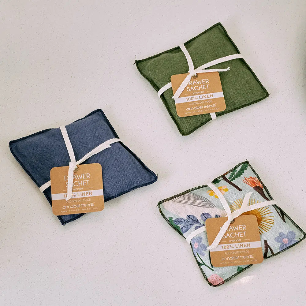 Lavender filled scented drawer sachets in many great designer fabrics. Wonderful for placing amongst linens or to hang in your wardrobe! Matching Eye rest pillows, shower caps, heat pillows and cosmetic bags available in most designs. Size: 9cm x 15cm