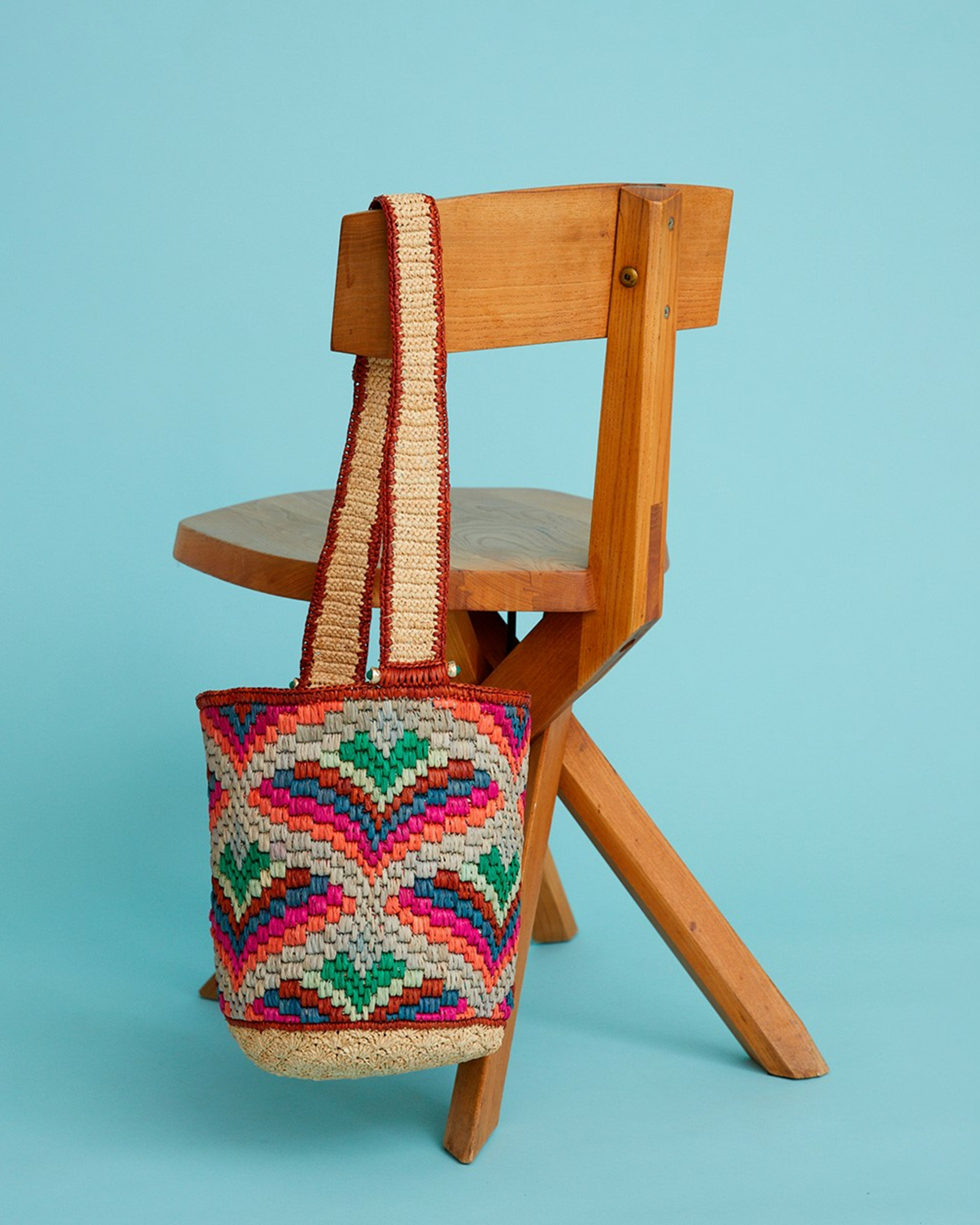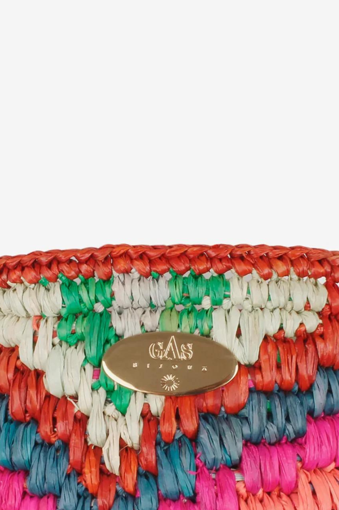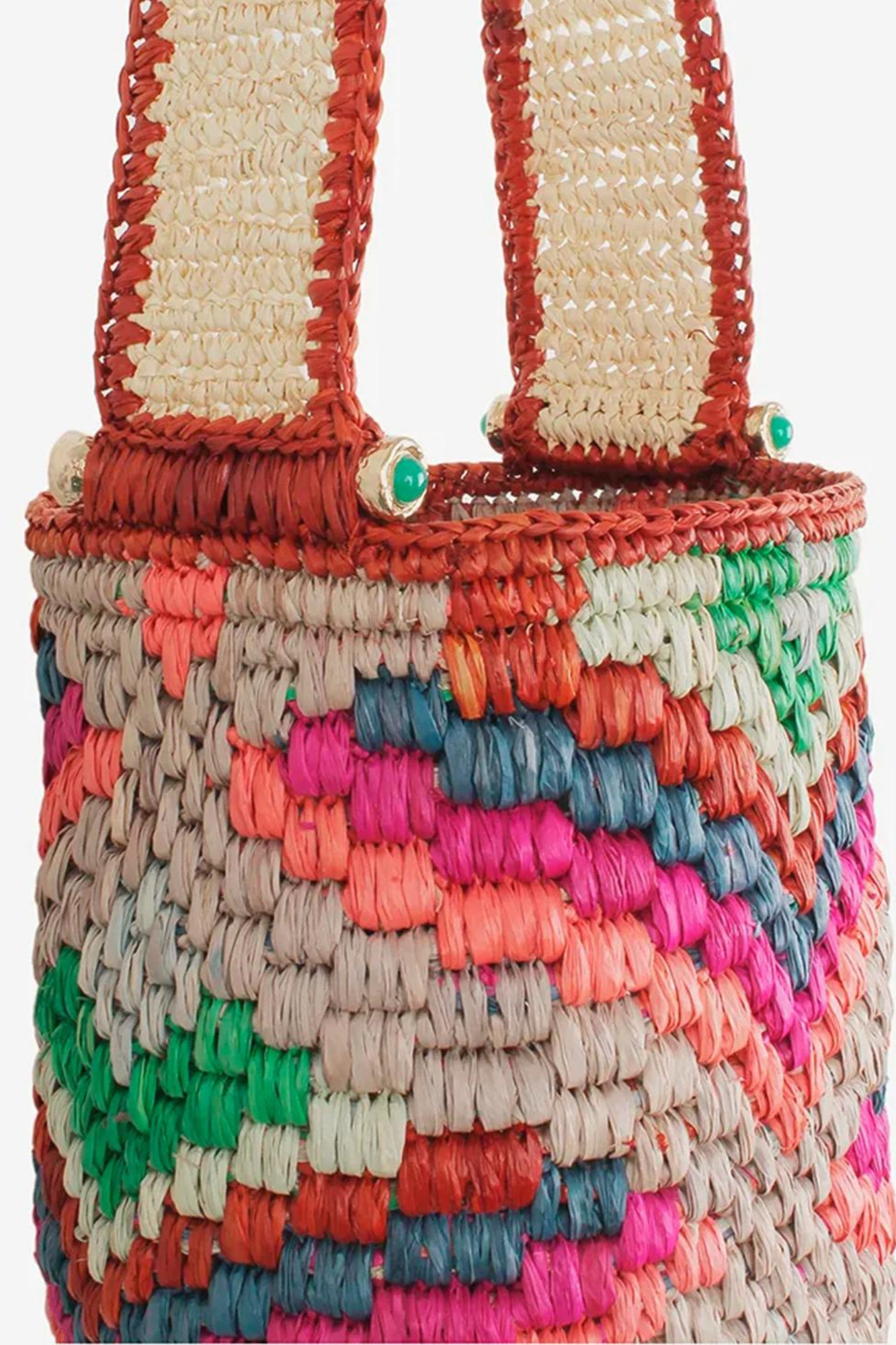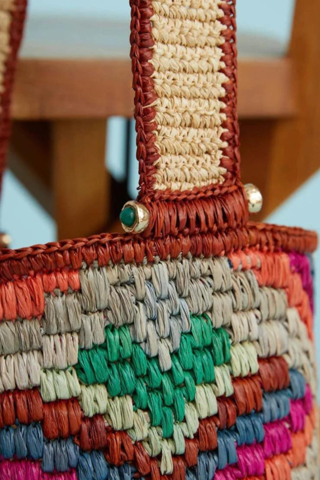 Our new dyed natural raffia bucket bag is dressed in new summer colors. Handmade in Madasgascar, it is adorned with a gold logo and bars adorned with semi-precious stones. It is worn on the shoulder and crossed. The handicraft respects a sustainable and environmentally friendly production with local communities by promoting the employment of women from disadvantaged backgrounds. This bag comes with a protective cover. Each model is unique and may present irregularities due to the natural character of the fiber and its handcrafted manufacture.