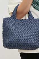 Effortlessly stylish and undeniably practical, the Sky's The Limit - Small Dark Denim Crossbody is your go-to companion for hands-free versatility. Designed in a sleek woven denim material, this compact tote is perfect for everyday essentials while exuding modern sophistication. Featuring a lightweight design and an adjustable crossbody strap, this bag seamlessly transitions from errands to outings. A zippered top ensures security, while the organized interior keeps your must-haves easily accessible. Whether you're on the move or keeping it casual, this chic crossbody tote blends functionality and fashion for an elevated take on a classic design.