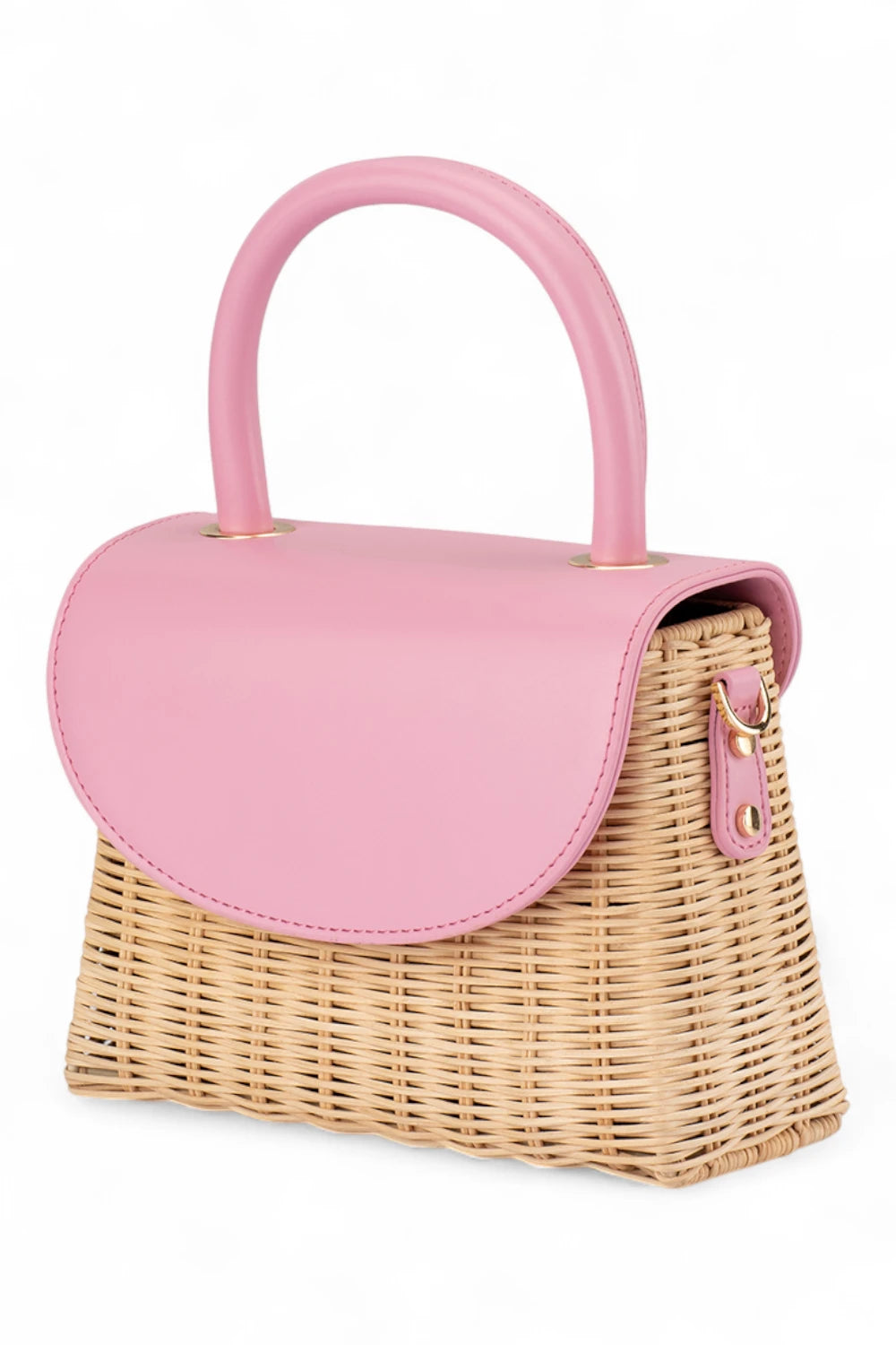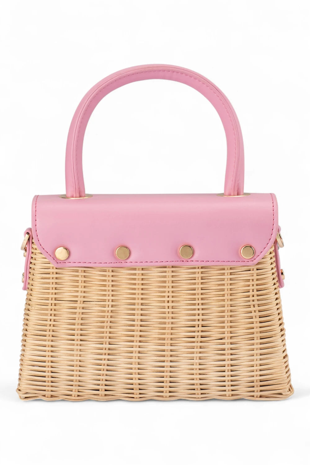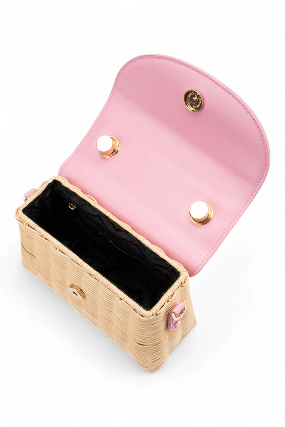The ELLE Wicker Top Handle Bag is your summer event go to with its generous capacity and chic lines. Fits a large smartphone, sunglasses and lip combo with room to spare. This vegan leather trimmed wicker bag with a magnetic closure features both a staple top handle and includes a shoulder strap for when you’re on the go.