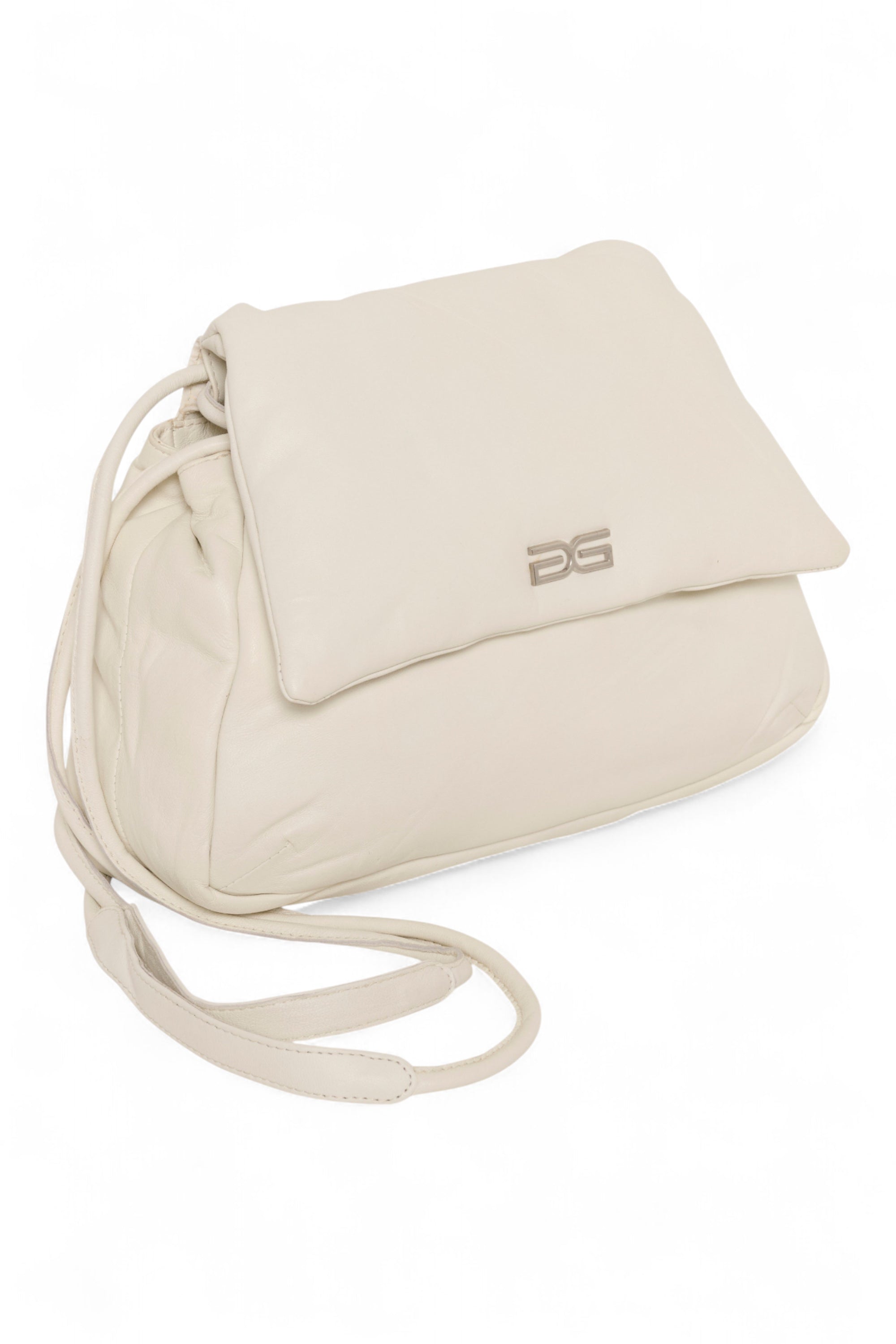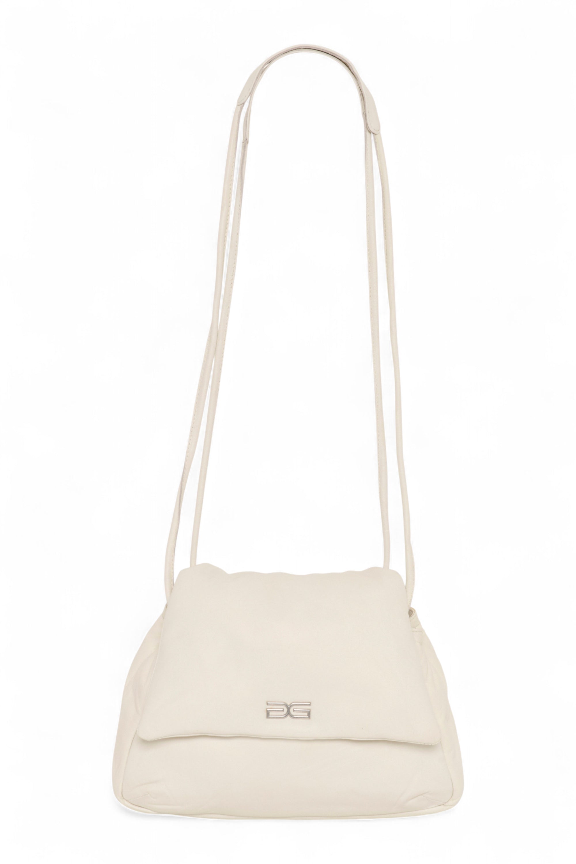 Soft bag with a slouchy silhouette and fold-over flap design. Features a comfortable strap and subtle metal logo detailing for an effortlessly modern finish.