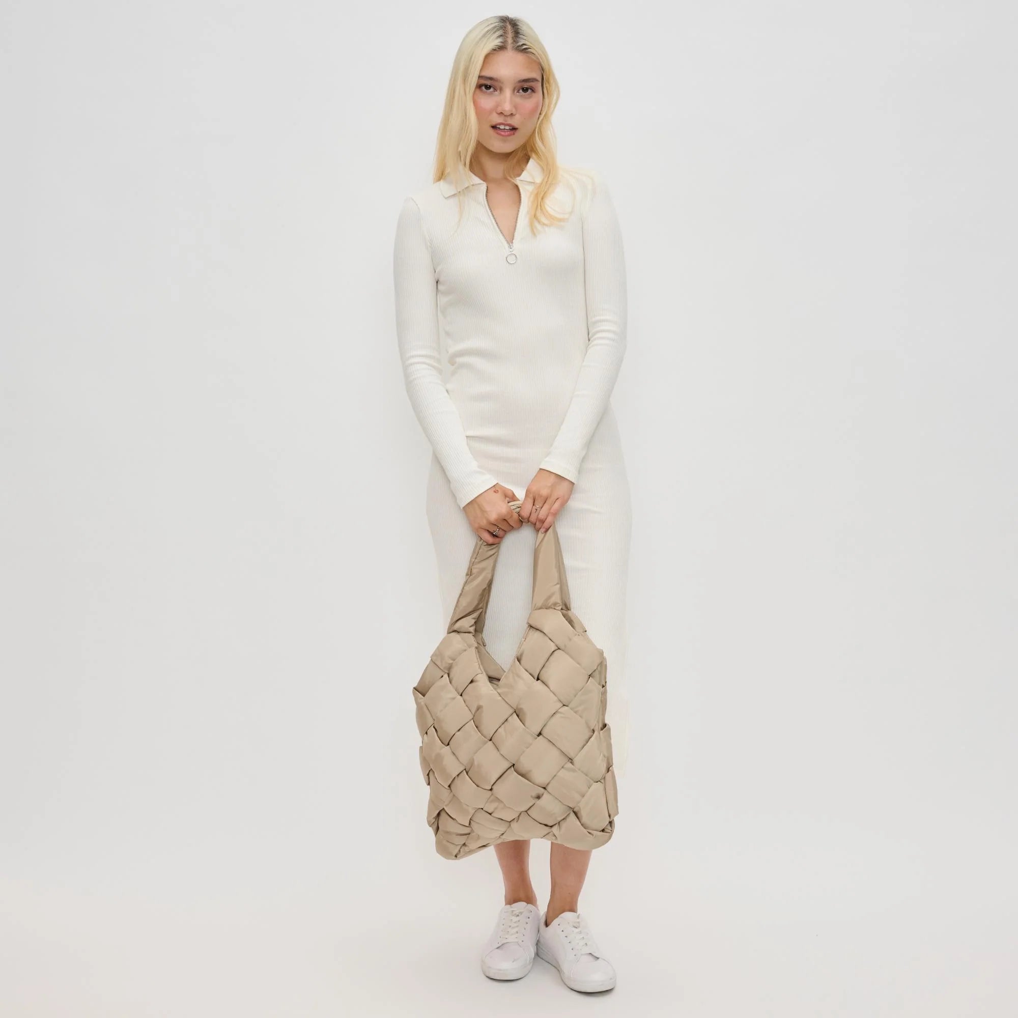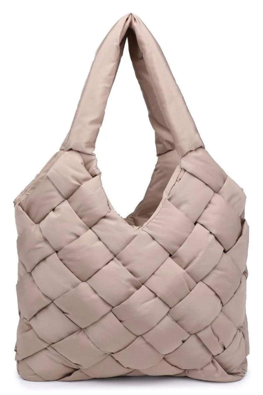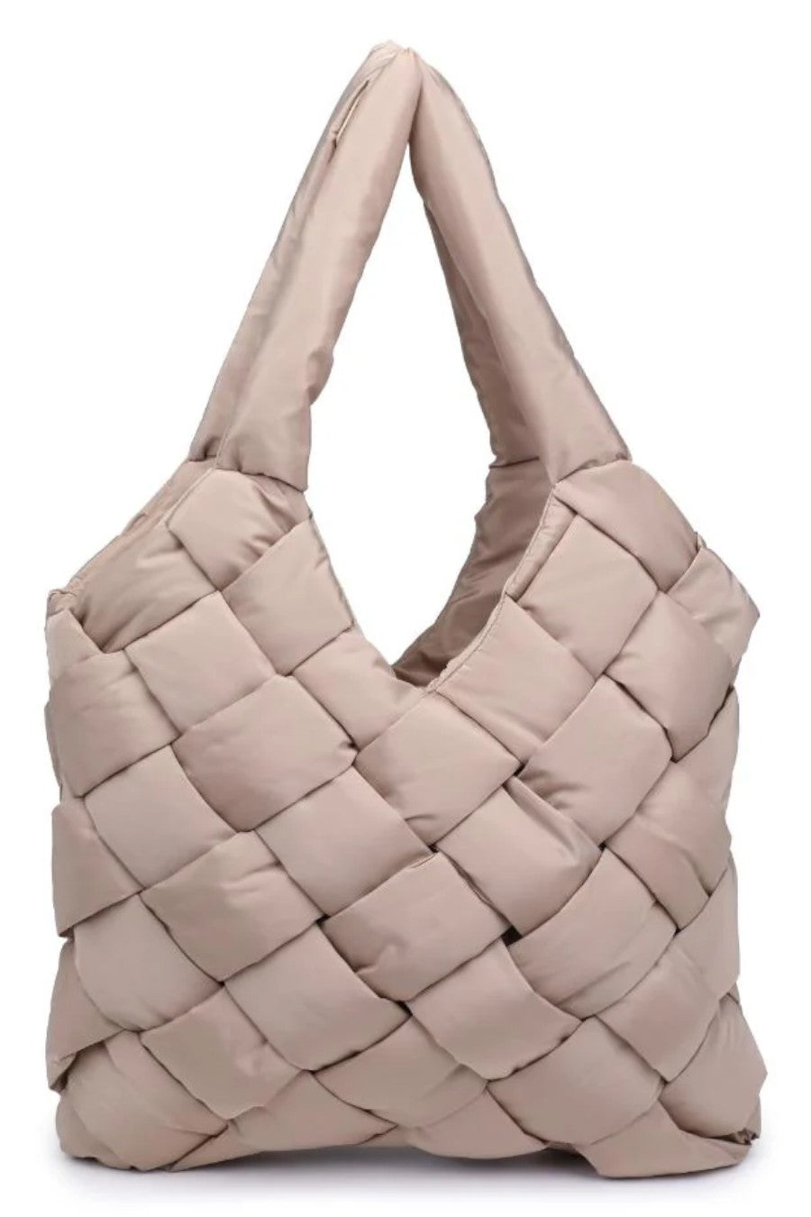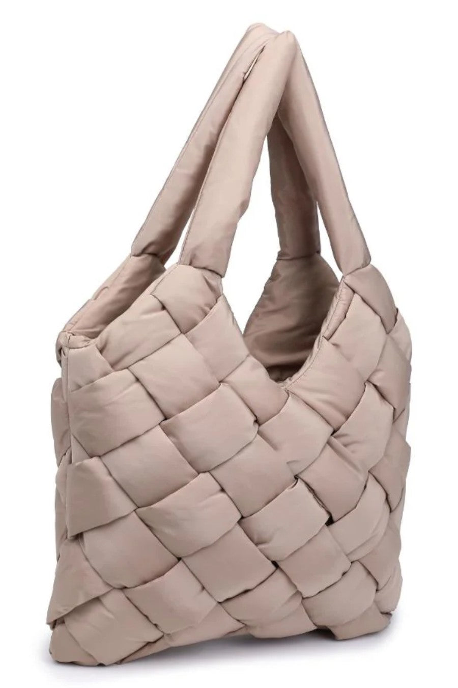 - Exterior Details: Woven Design, Tonal Hardware, Hidden Cell Phone/Sunglass Pocket