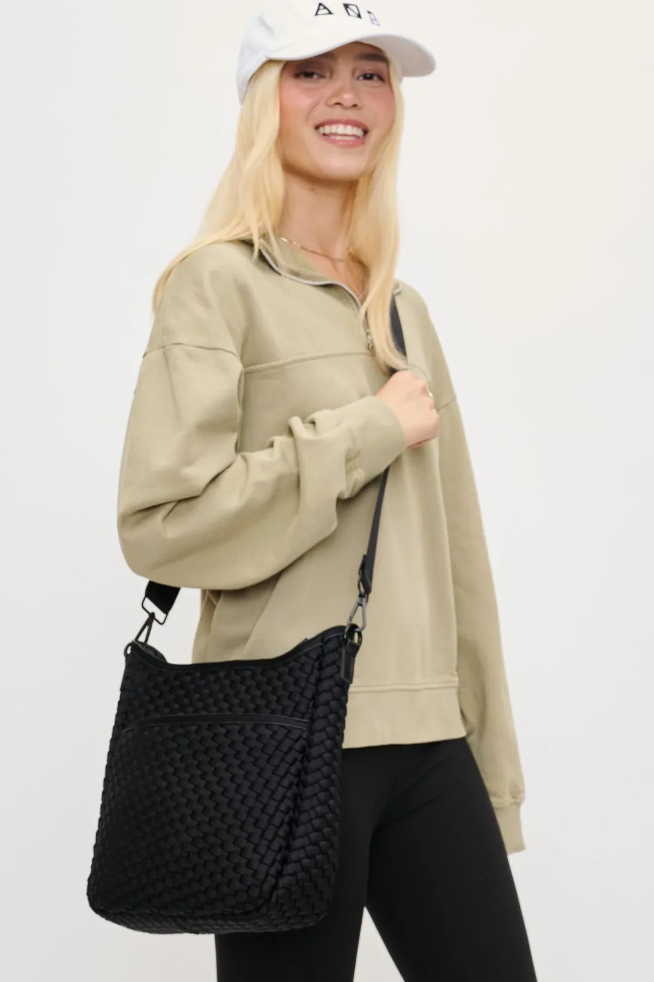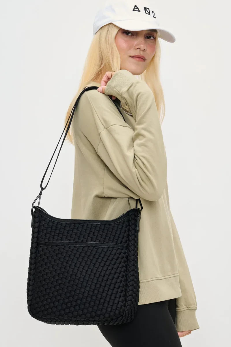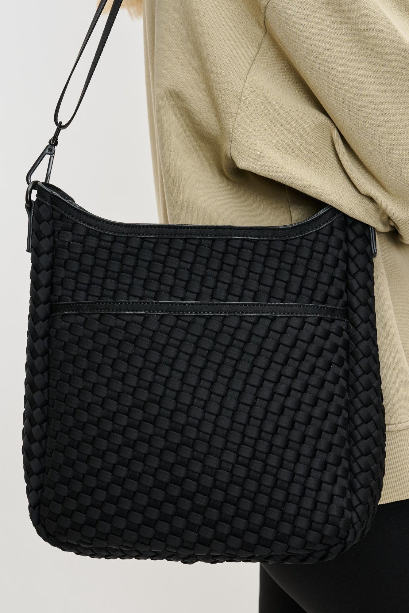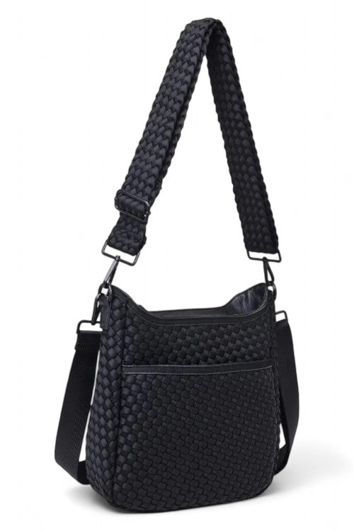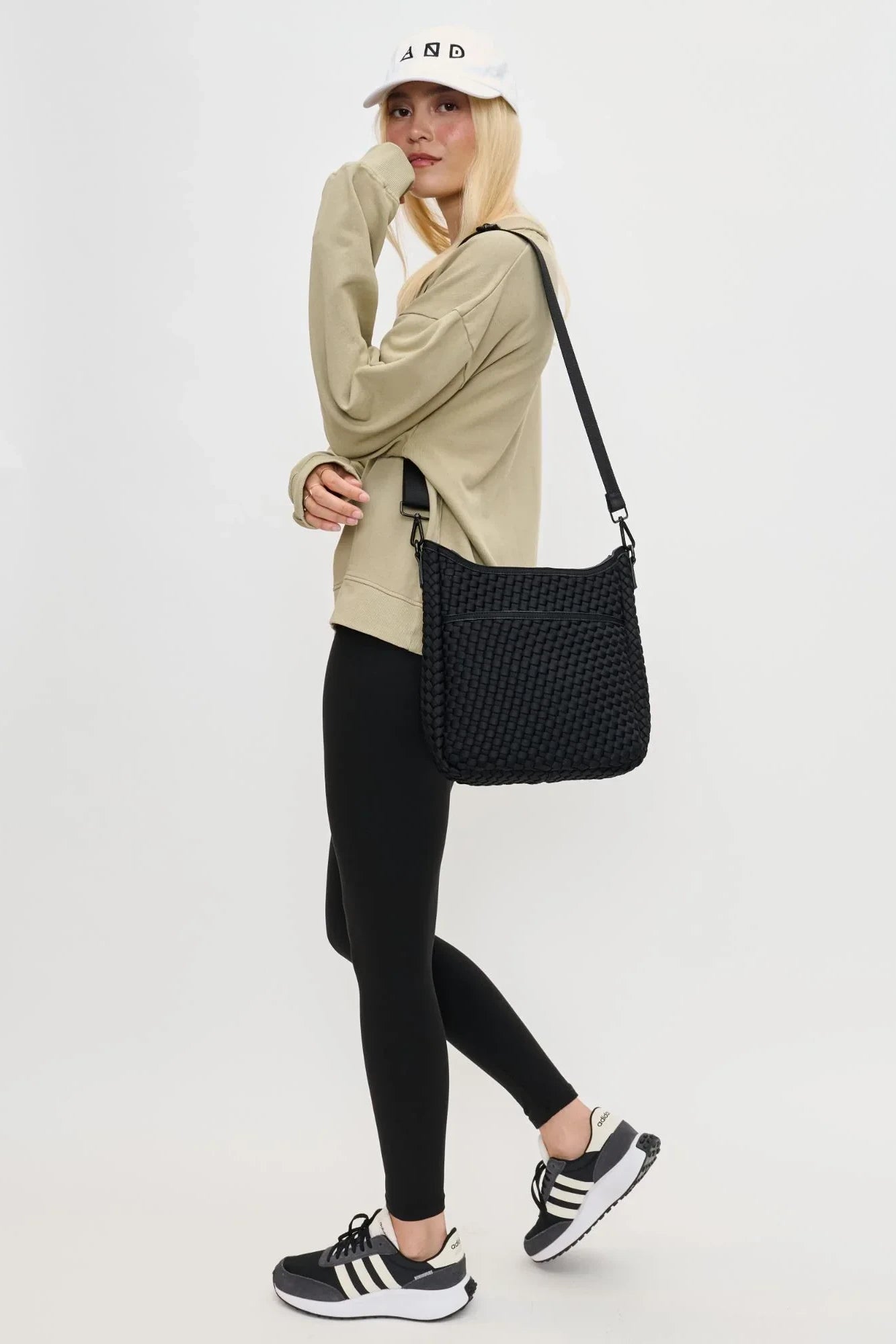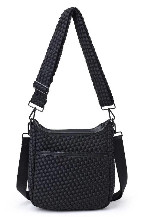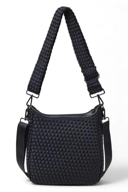 Introducing our Kismet Neoprene Crossbody – the perfect blend of style and practicality. Featuring a sleek woven exterior with tonal hardware and a convenient front slip pocket, this bag is designed for your on-the-go lifestyle. Inside, the water-repellant nylon lining keeps your essentials safe, complete with one zip pocket and two slip pockets for optimal organization.