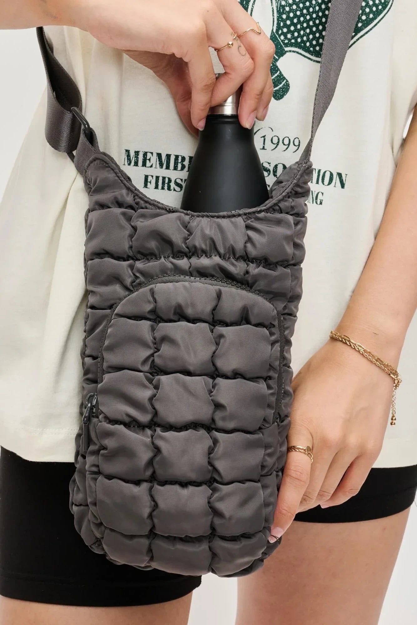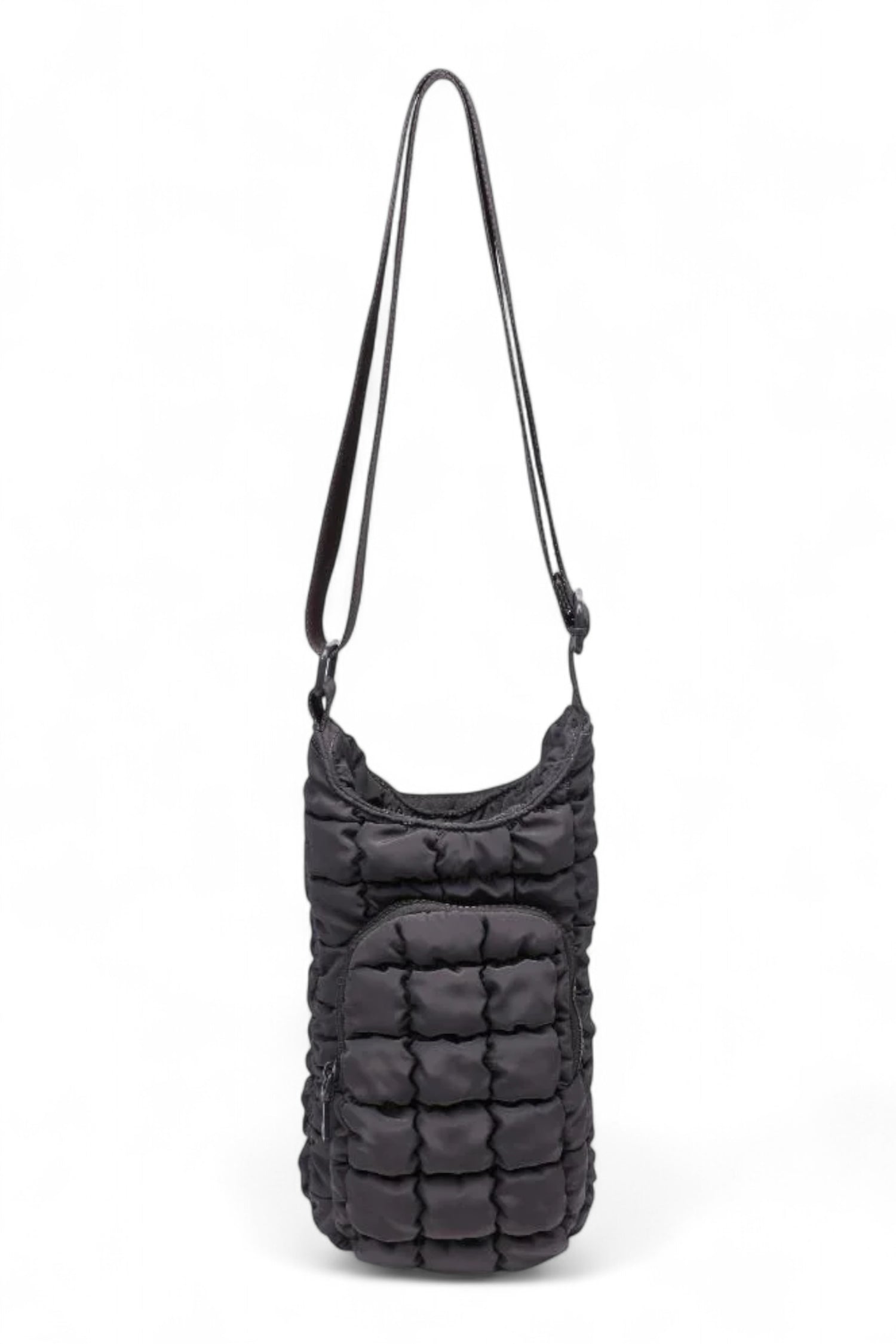 Introducing the Let It Flow Quilted Puffer Water Bottle Crossbody Bag—a fashion-forward essential for all active women! Crafted with care, this bag seamlessly combines fashion and function. Its compact design ensures you stay hydrated on the move, making it your ideal companion for busy days. Carry your water bottle in the center compartment, store your cell phone in the backside slip pocket, and keep your personal essentials organized in the front zippered compartment. Elevate your fashion game while prioritizing health—hydrate in style!