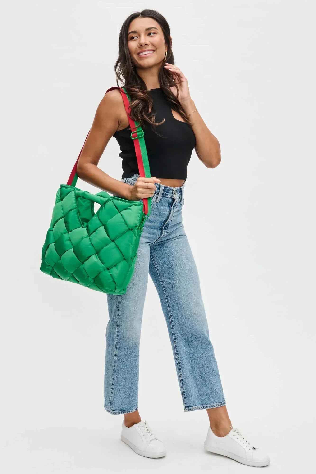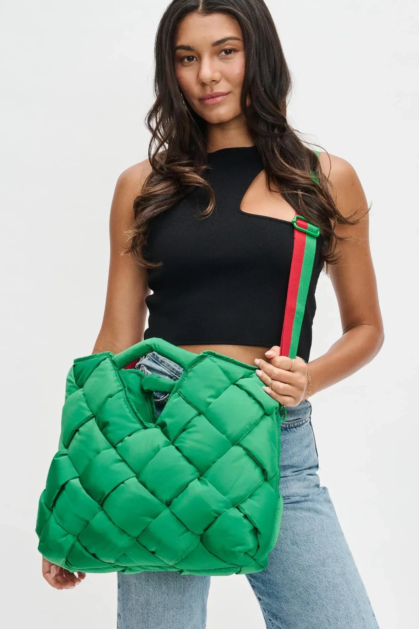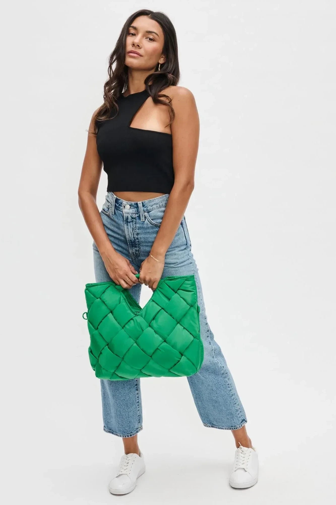 - Exterior Details: Woven Design, Top Handle, Adjustable/Detachable Shoulder Strap