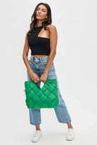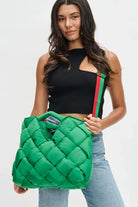 Crafted from durable nylon with a sophisticated woven design, this tote is both chic and practical. The secure zipper closure ensures the safety of your belongings, while the top handle and adjustable/detachable shoulder strap offer various carrying options. Elevate your daily style with this trendy and functional tote that effortlessly combines fashion and versatility.
