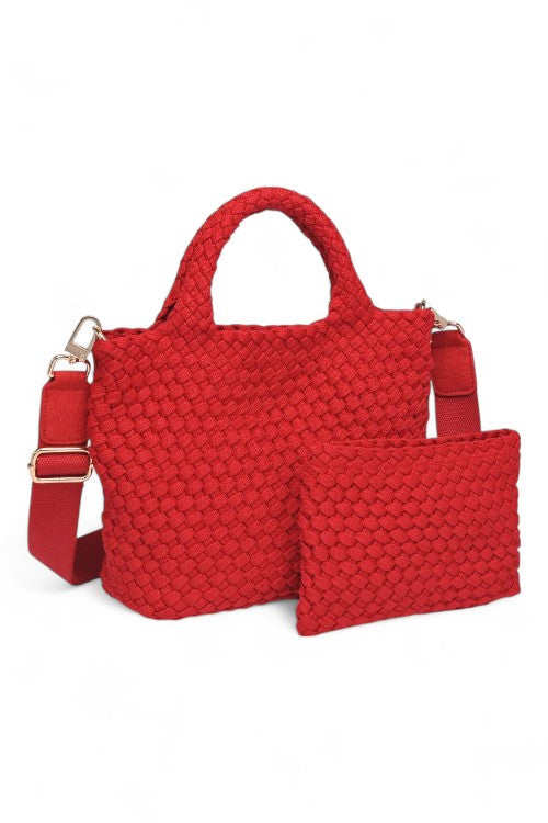 Elevate your everyday with this versatile small crossbody bag. Its compact design is perfect for hands-free convenience while maintaining a chic, polished look. Crafted from sustainable recycled materials, this bag lets you make a style statement while supporting eco-conscious practices. Featuring a lightweight, durable woven texture, this crossbody offers both functionality and flair. A detachable strap ensures versatile wear as a tote or crossbody, adapting effortlessly to your day. Ideal for running errands or traveling light, it's your go-to for sustainable, stylish accessorizing.