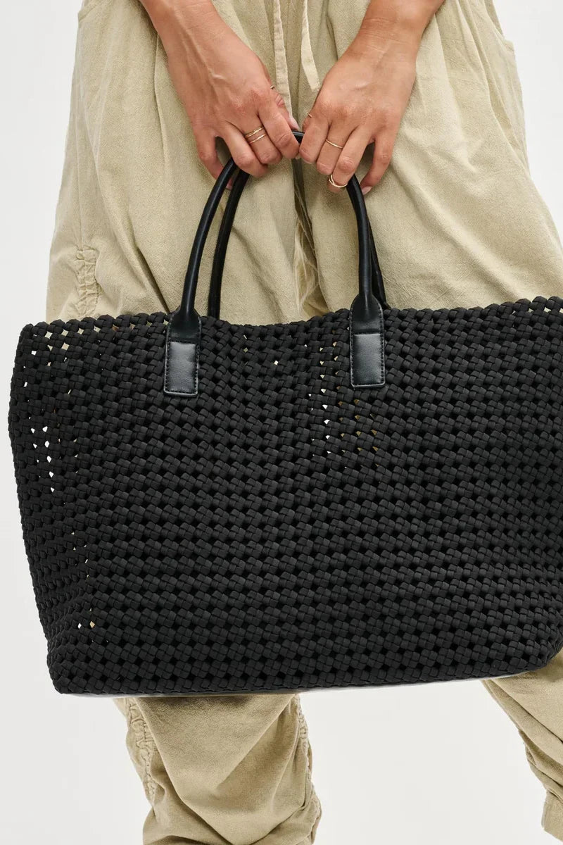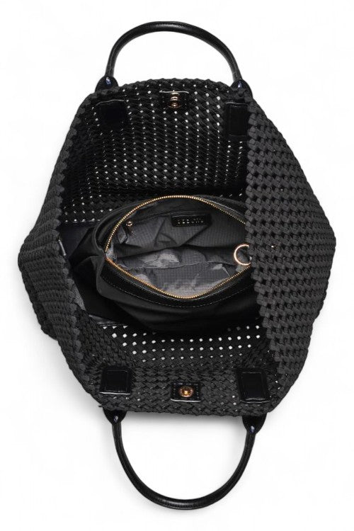 A chic essential crafted from neoprene. Revel in the relaxed elegance of the open closure and the intricate braided design. The adjustable/detachable shoulder strap offers personalized wear, and the unlined interior adds a touch of easy sophistication. Unveil practicality with the removable drawstring pouch, making this Hobo the perfect companion for your everyday adventures.