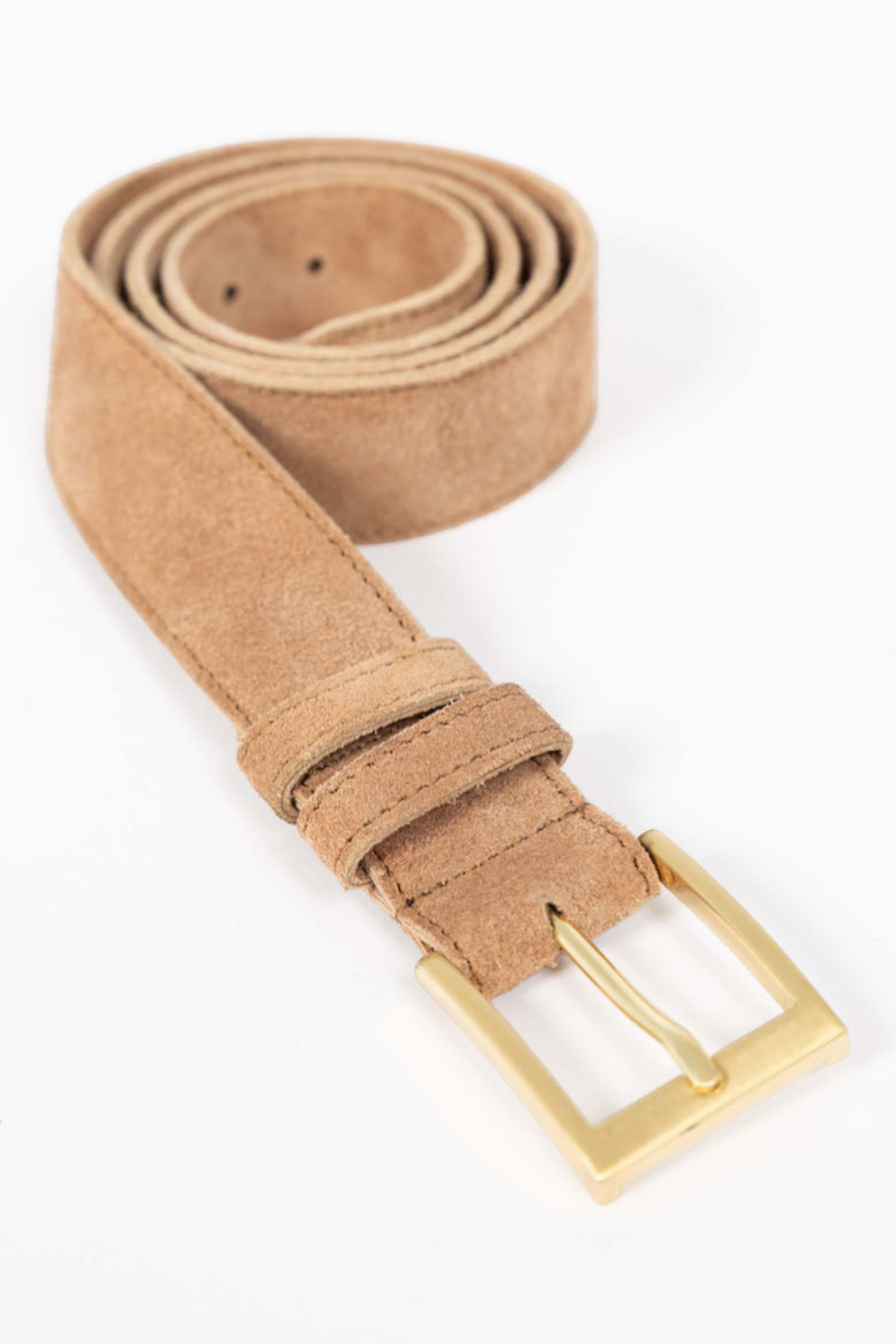 A timeless belt crafted with 100% soft suede, double suede keeper and rounded brass buckle.