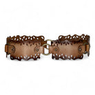 Made in white raw leather, dip dyed and tumbled to achieve a weathered effect – this leather will soften with wear. All marks are natural markings on the leather which is picked up by the dye.
