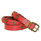 Belt featuring woven decorative details and brass studs with a camel loop.