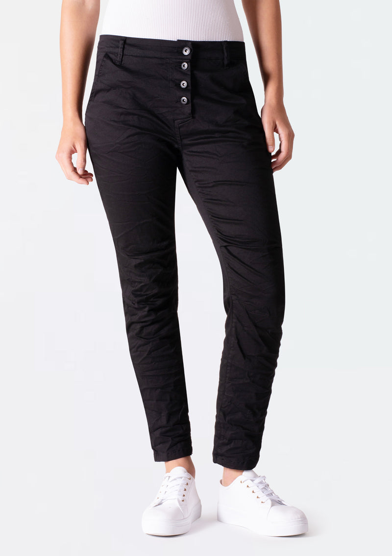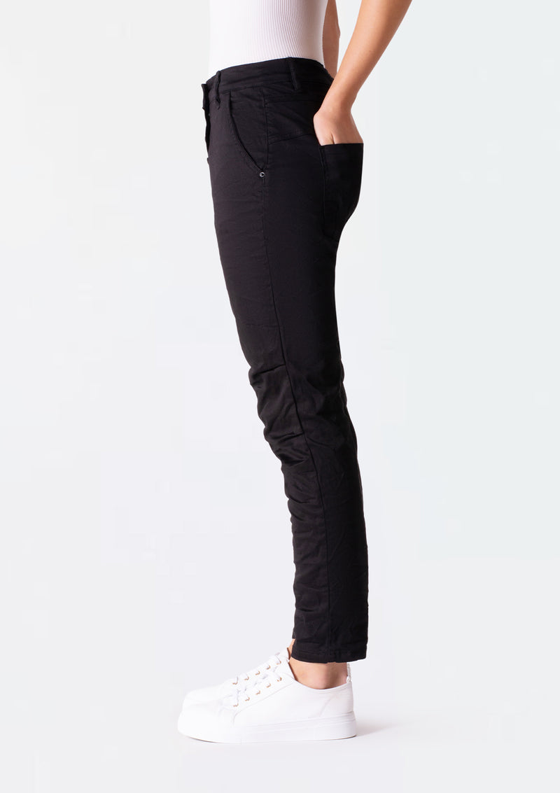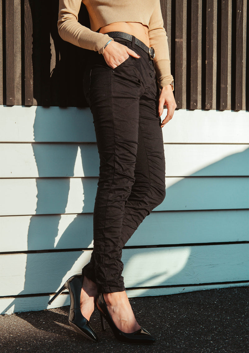 Black but never basic, the Alabama Boyfriend Pant by Bianco is the ultimate wardrobe staple. Makes for the perfect every day look or can be dressed up with your best heels & accessories. Provides the classic boyfriend fit for extreme comfort & style.