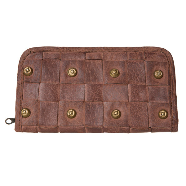 The Amazon wallet is crafted from beautifully weft butter soft leather complete with a brass stud detailing. The Amazon fastens with a zipper and internally contains card slots, a phone pocket and zipper compartment all made out of the same gorgeous soft leather.