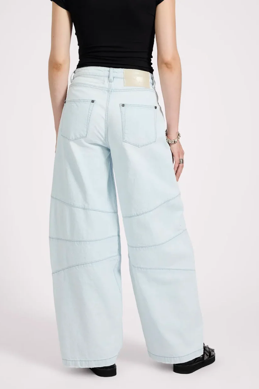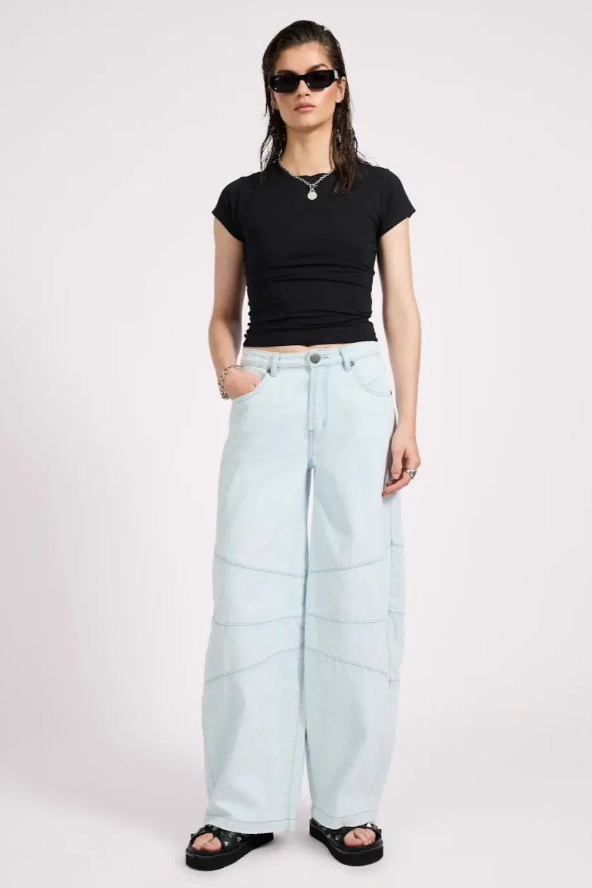 The BARREL DENIM JEANS have rolled in. The oversized barrel leg fit with parachute pant vibe feature. These jeans are designed for style but have a relaxed, loose silhouette that offers plenty of movement.