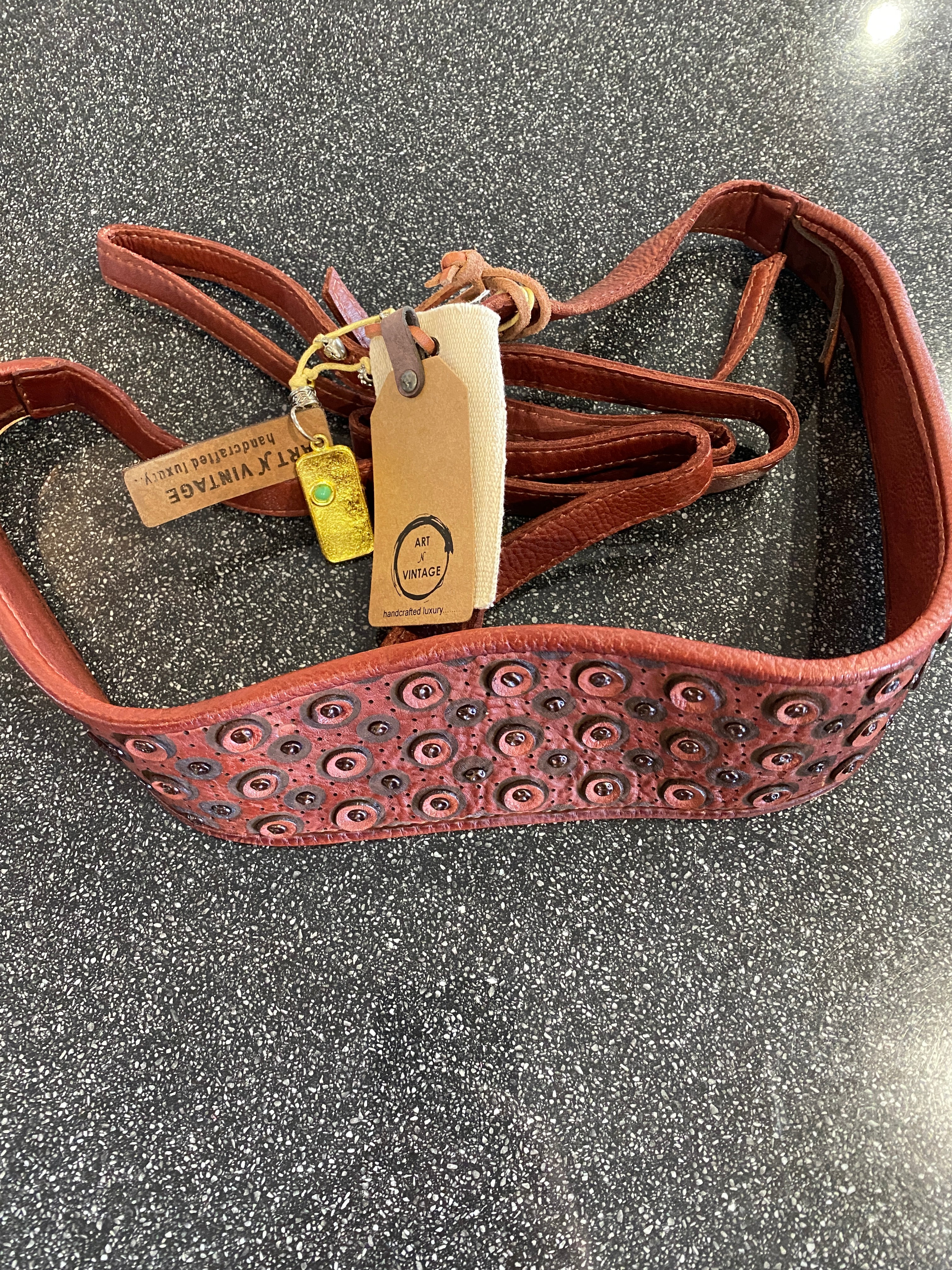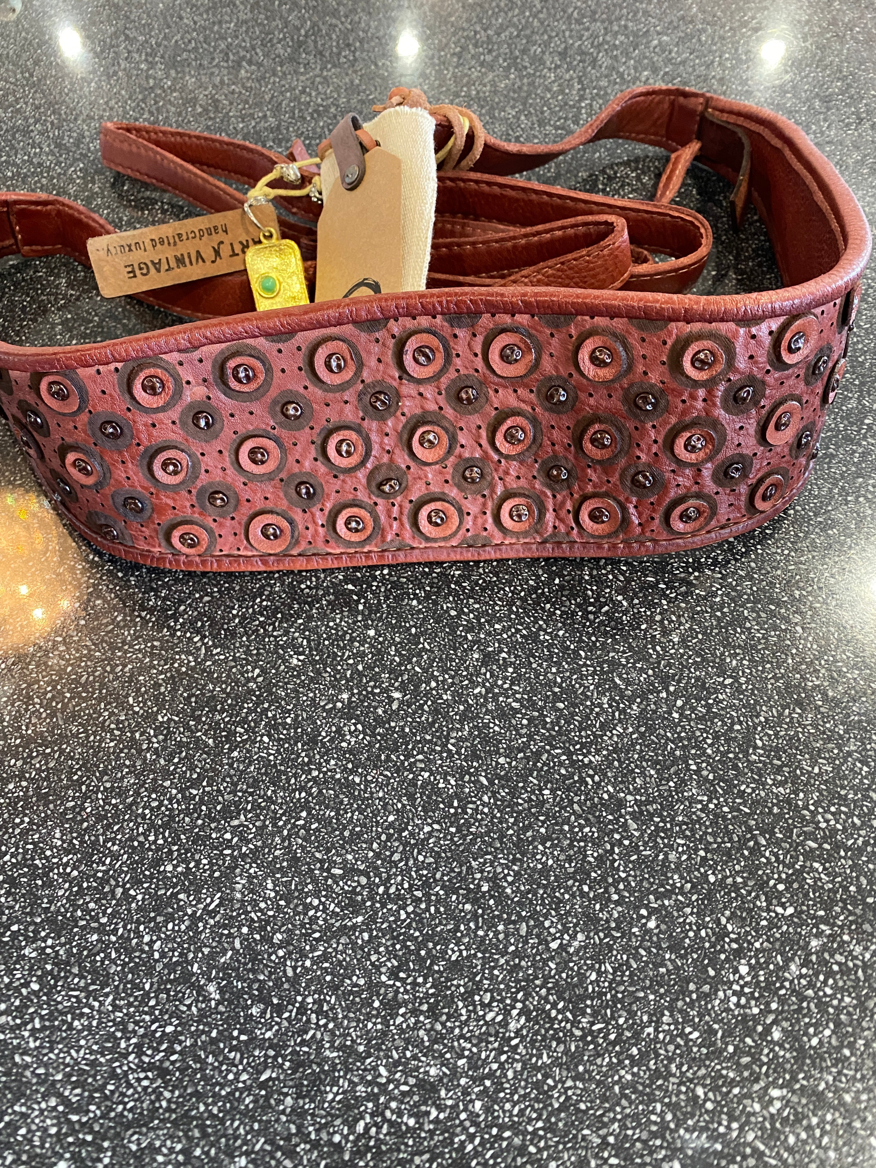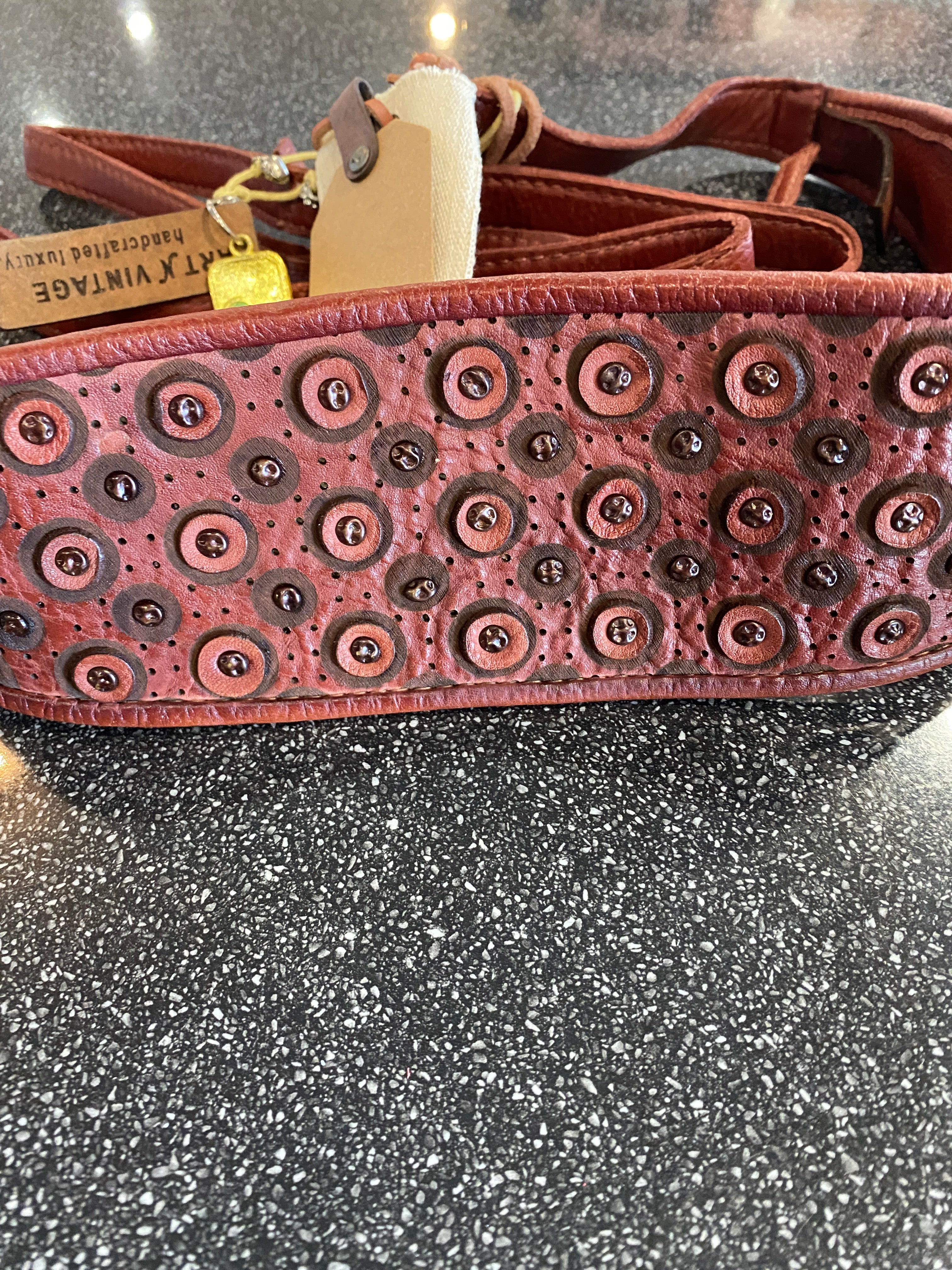 • Wrap leather belt with laser circle design and stud design