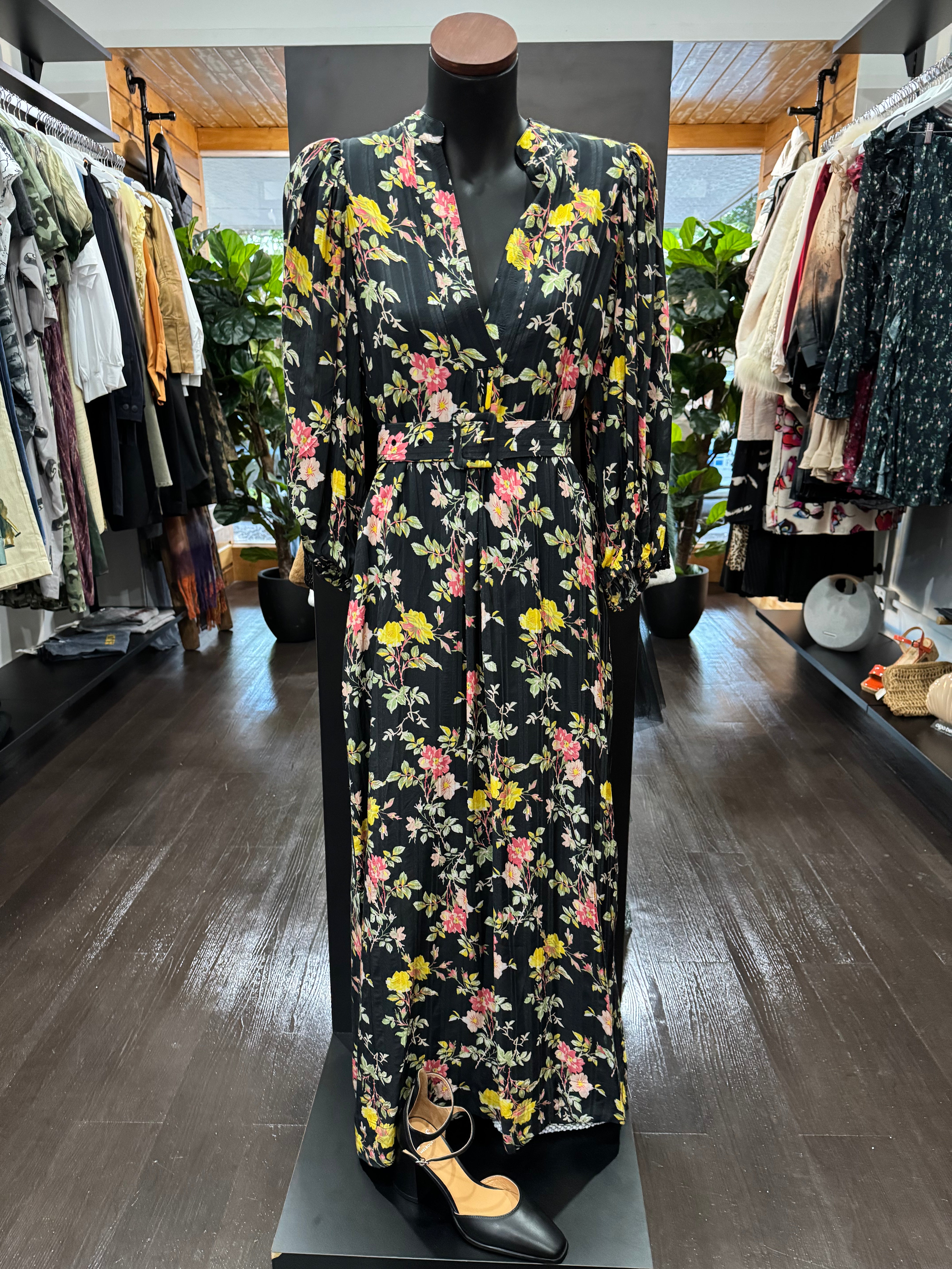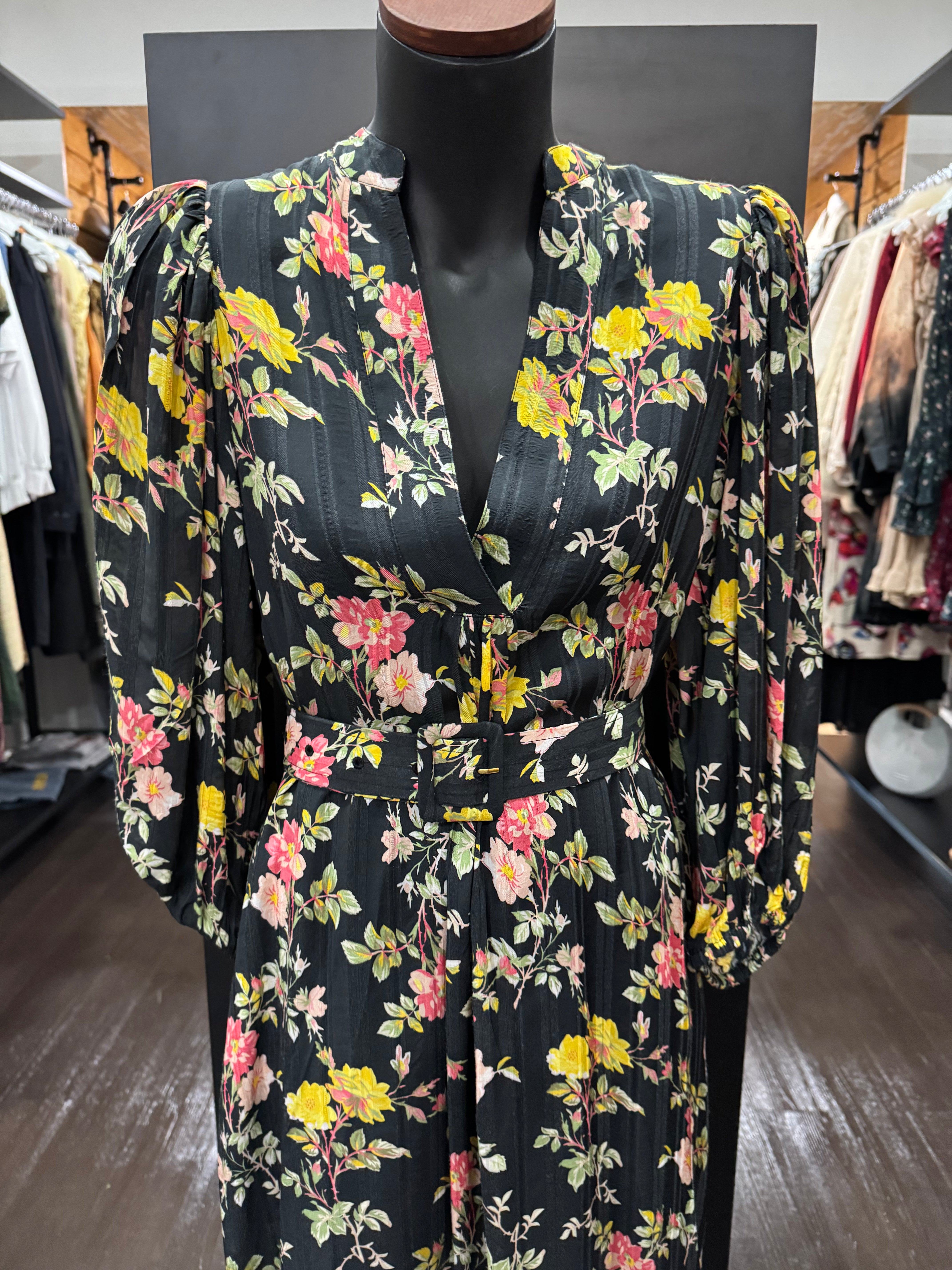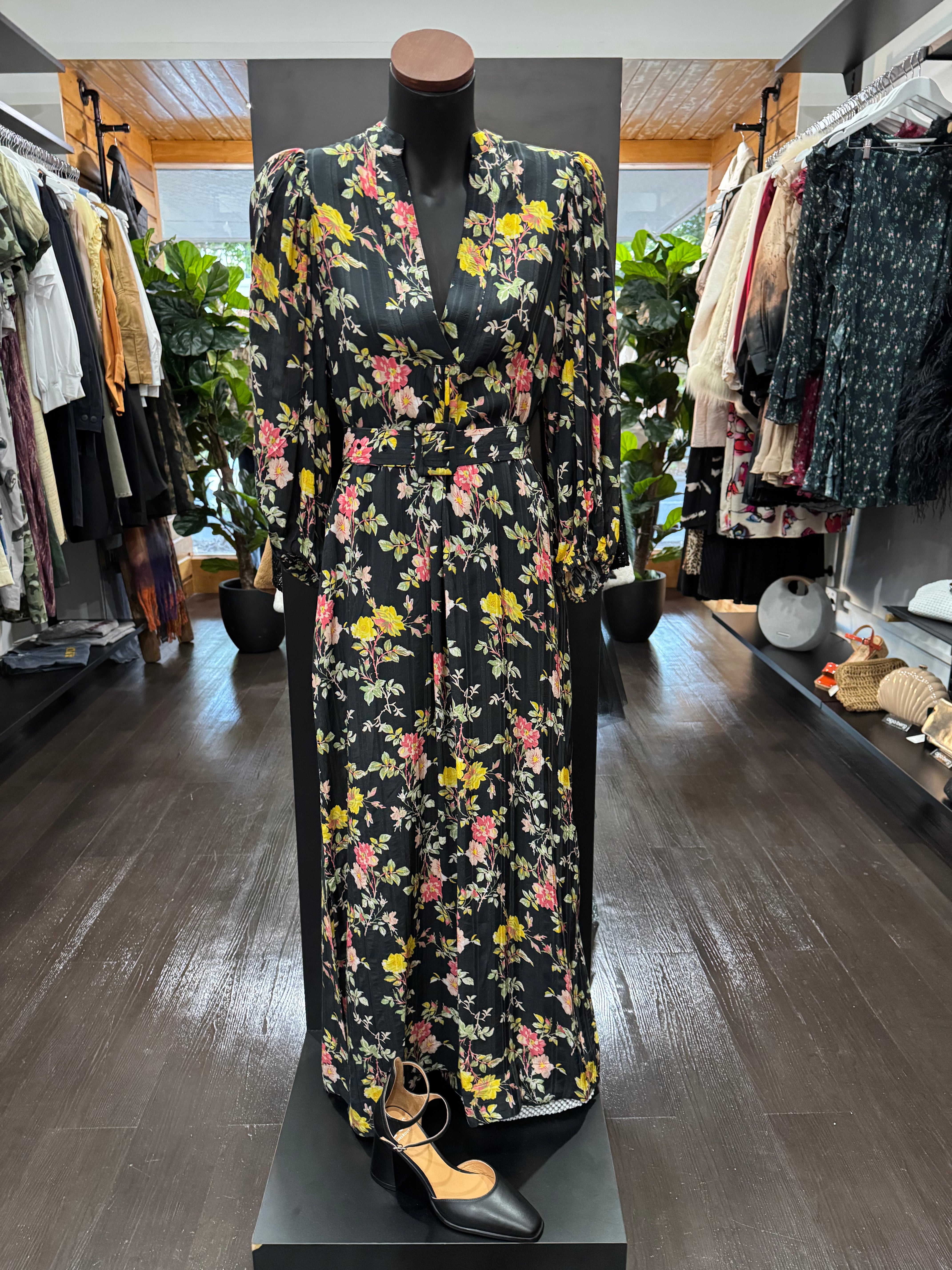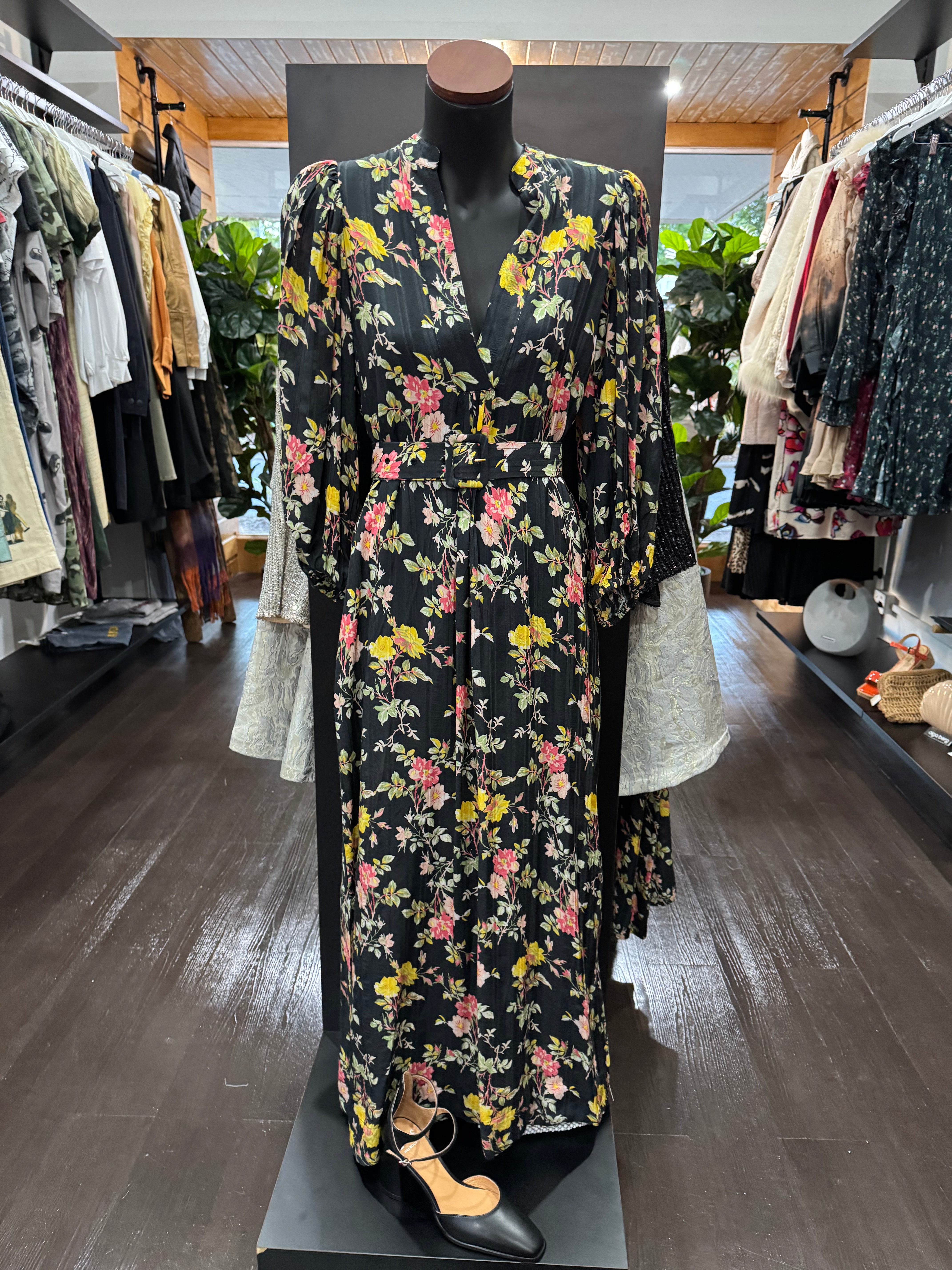 The Boho Midi Dress is cut in a soft and lightweight viscose fabric with a beautiful floral design. It is a maxi length, kaftan style  and long voluminous sleeves with elastic cuffs. This dress is finished with a mandarin collar, side splits, v-neck opening and a loose, matching belt.  Your transeasonal must have.
