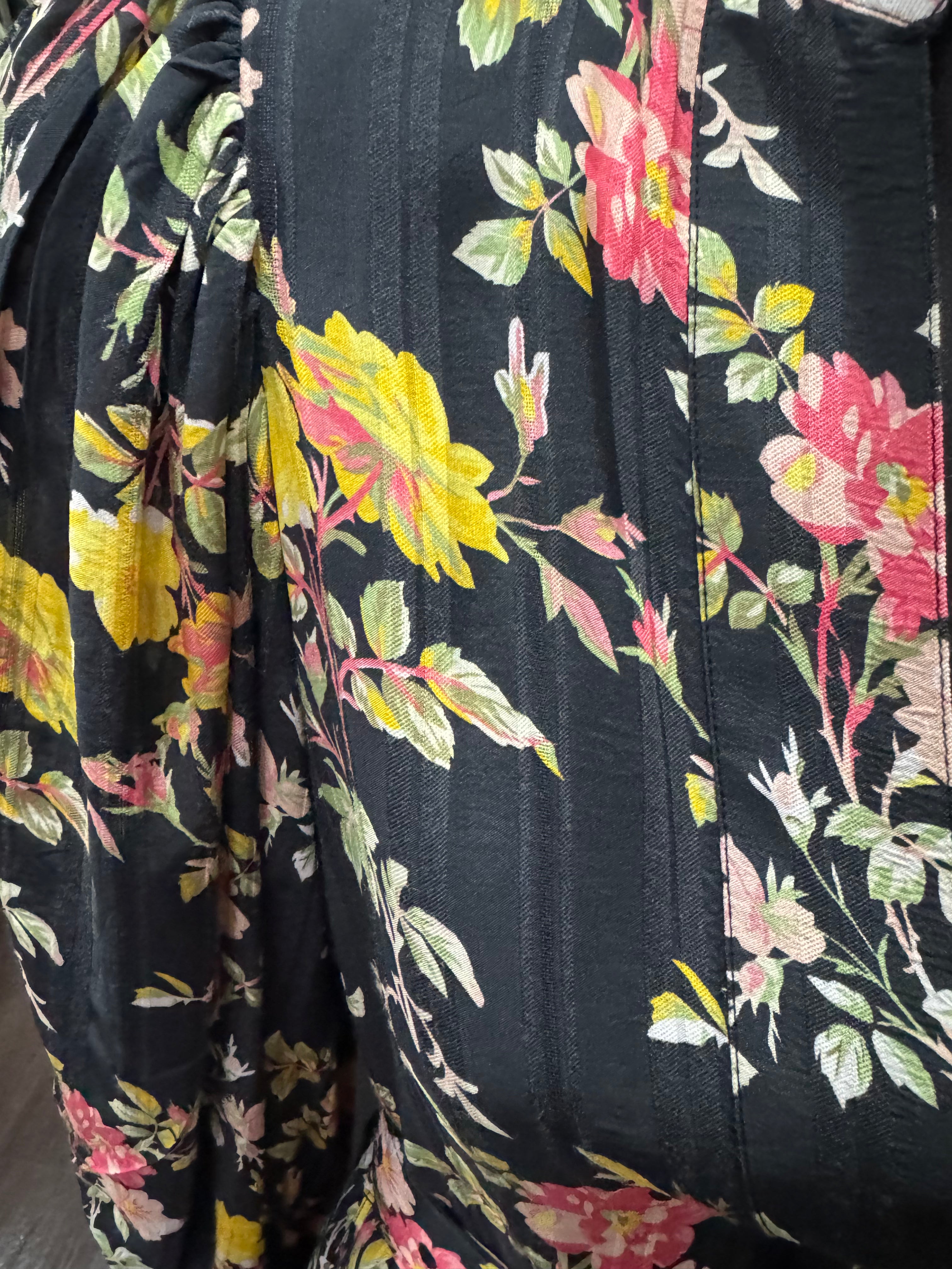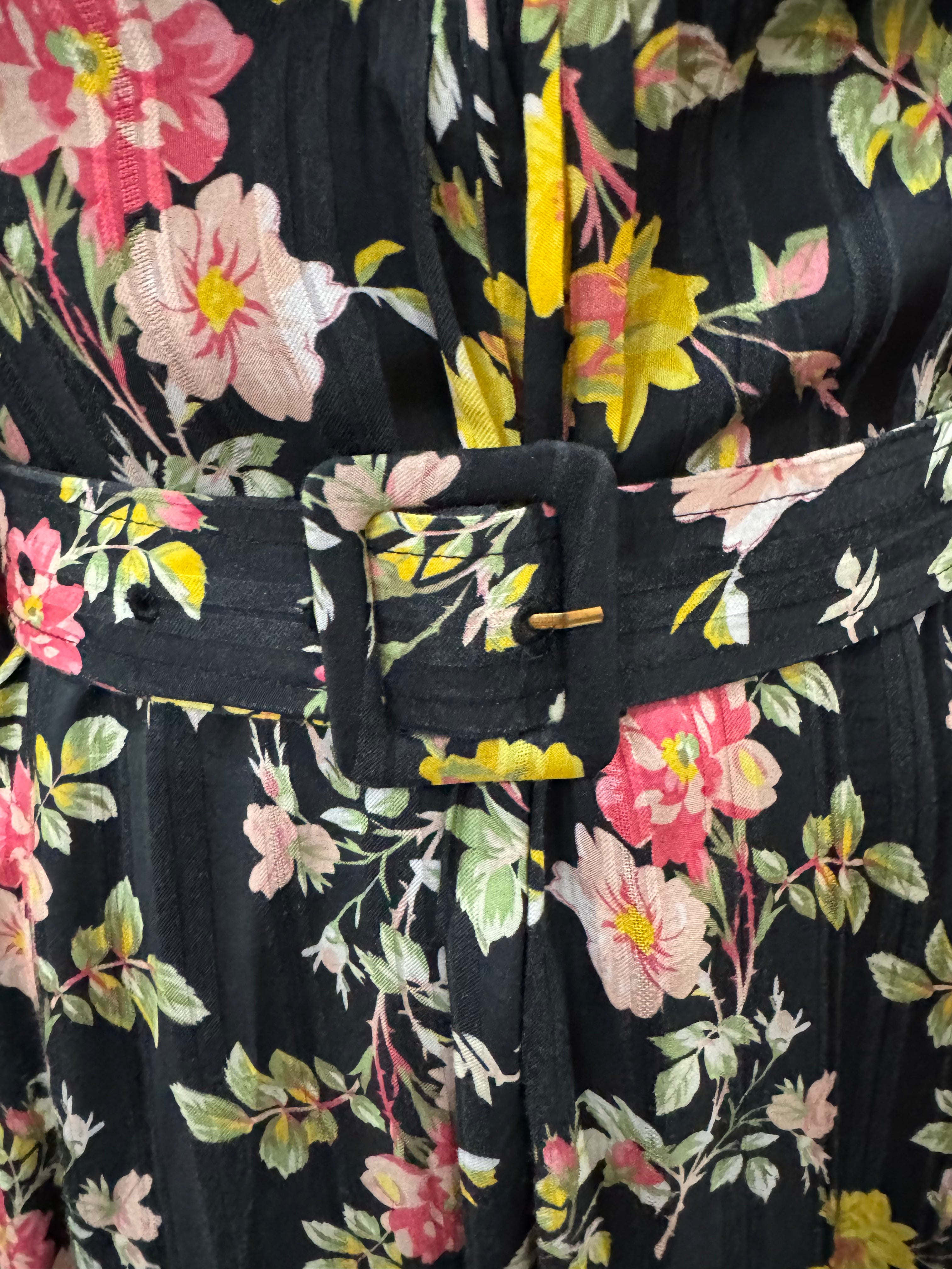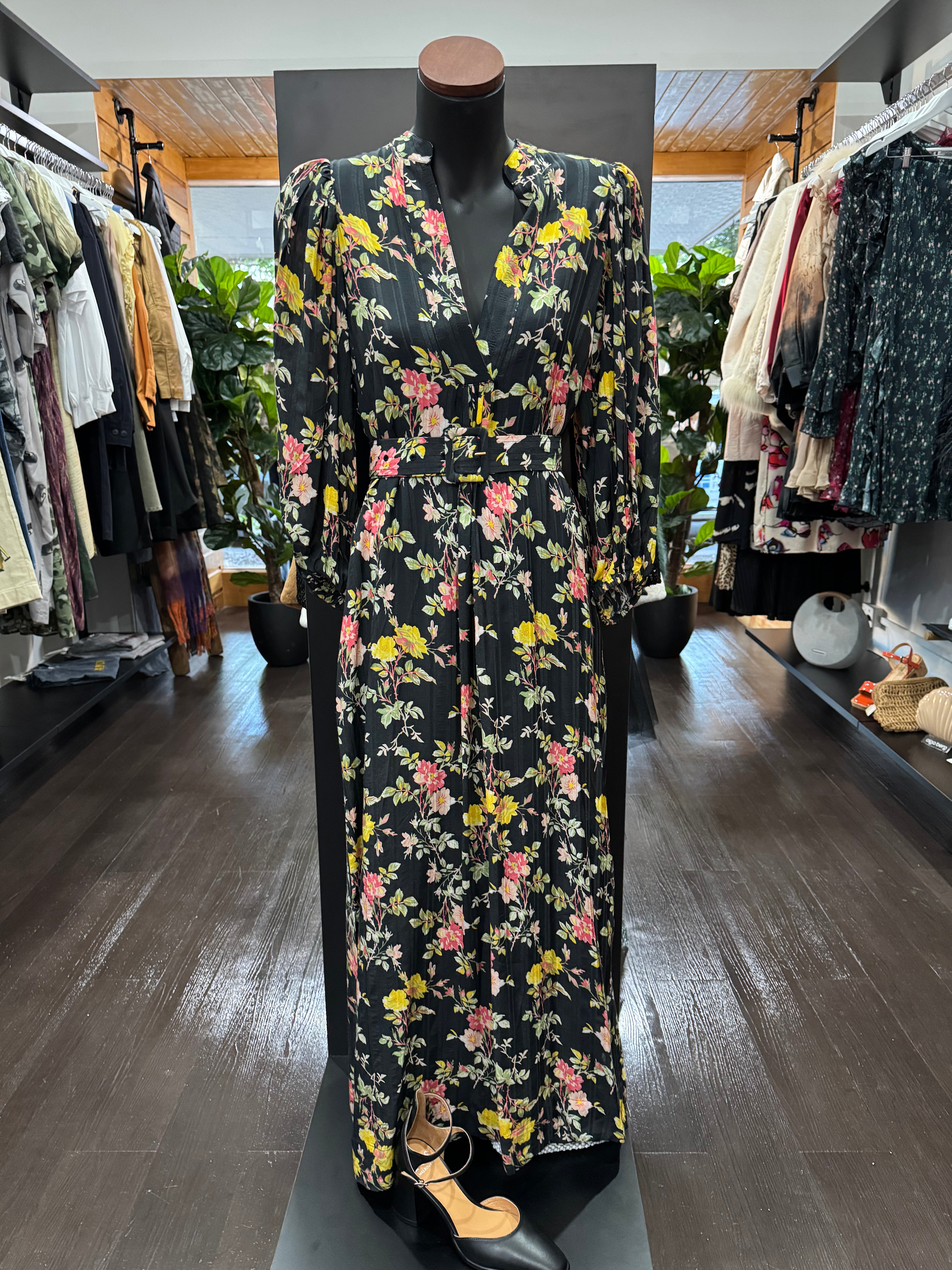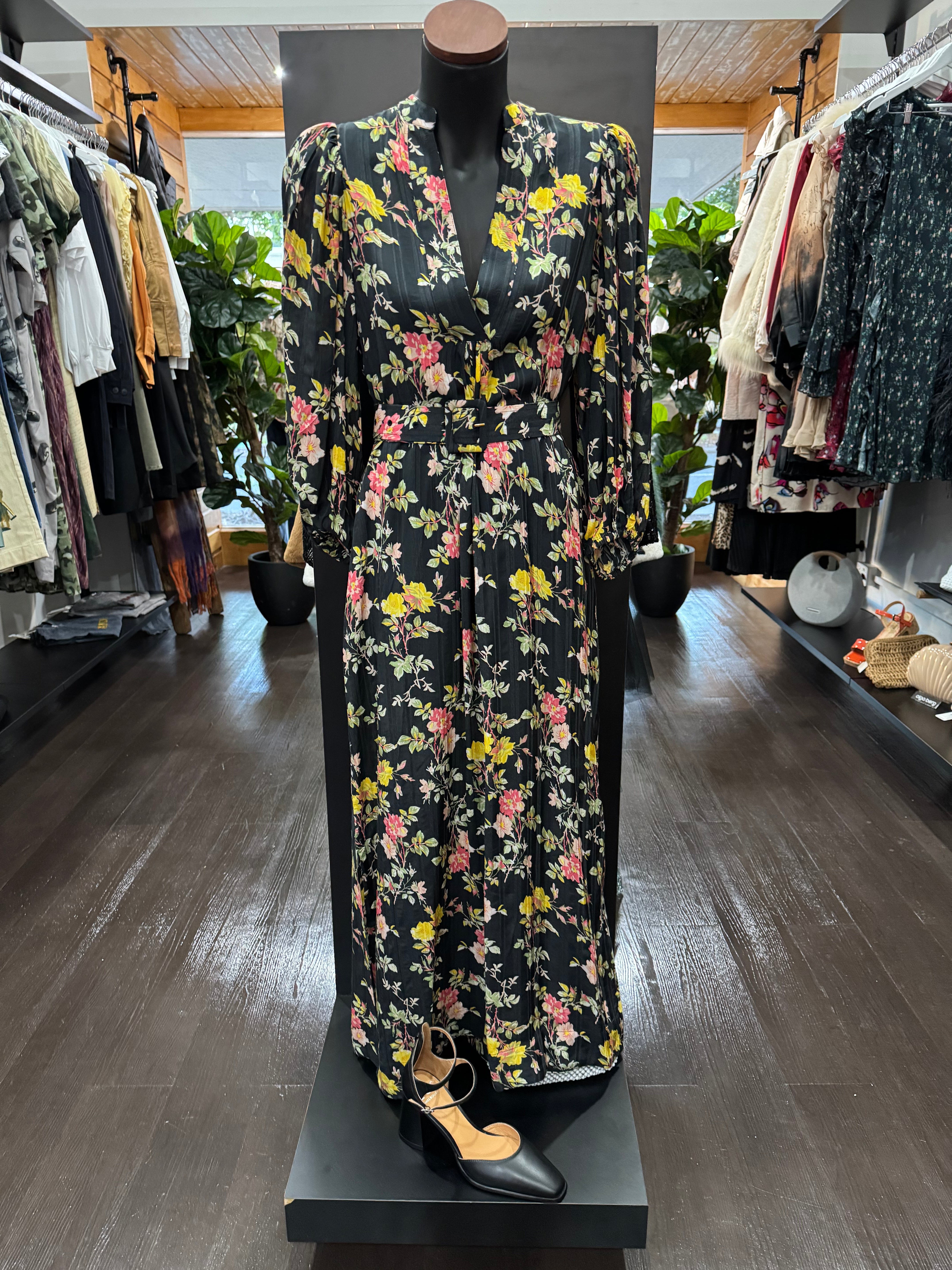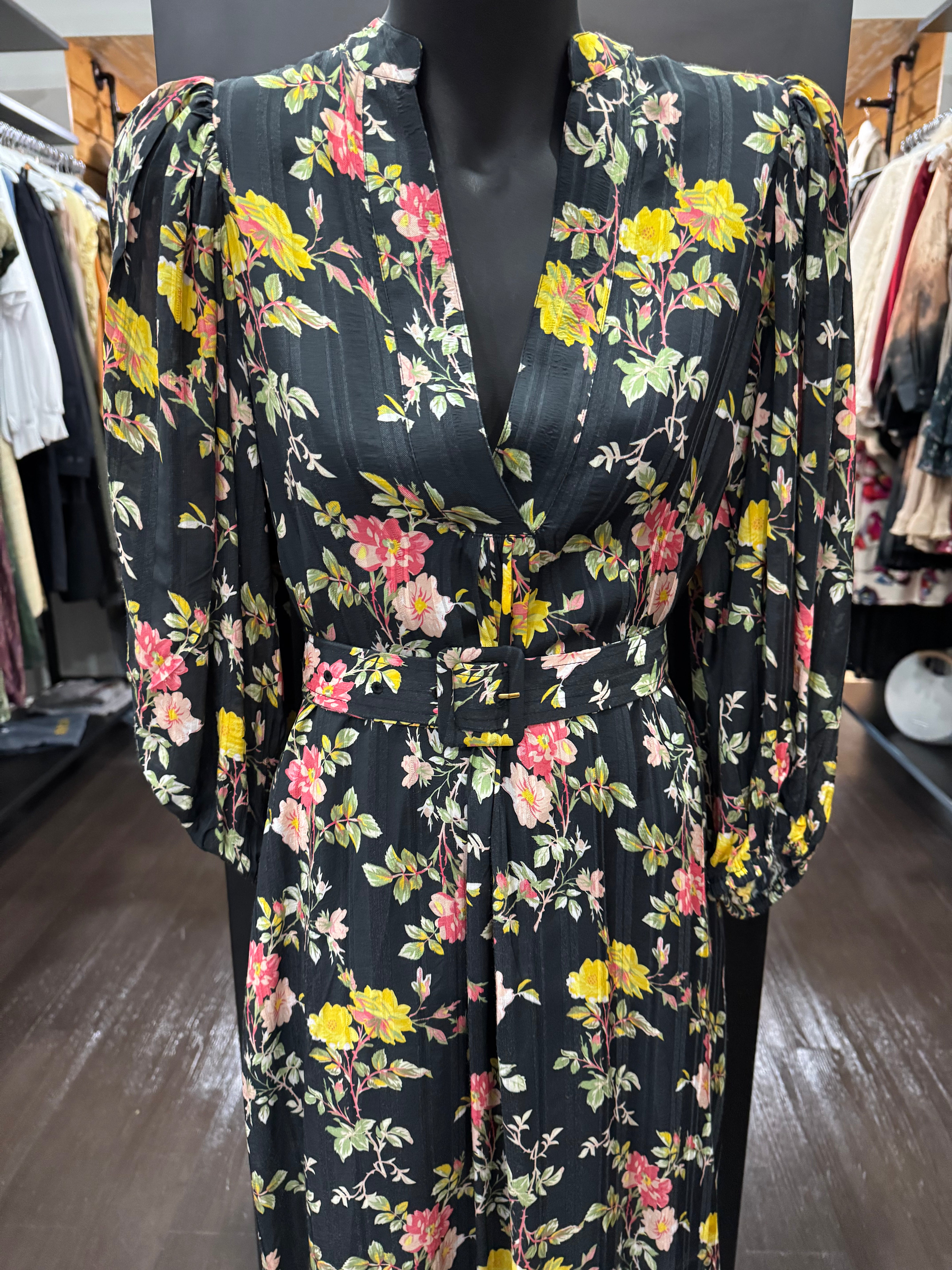 The Boho Midi Dress is cut in a soft and lightweight viscose fabric with a beautiful floral design. It is a maxi length, kaftan style  and long voluminous sleeves with elastic cuffs. This dress is finished with a mandarin collar, side splits, v-neck opening and a loose, matching belt.  Your transeasonal must have.
