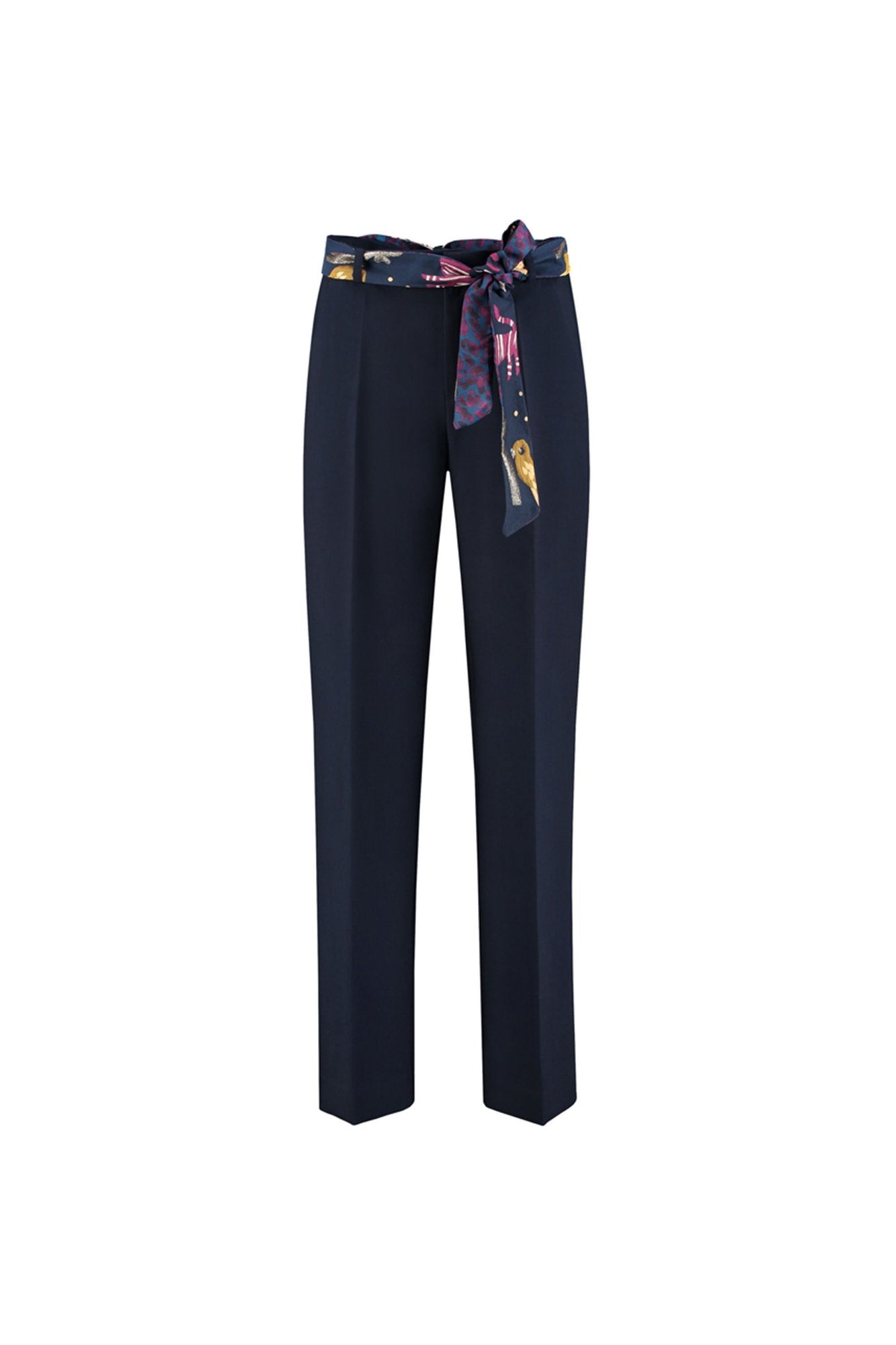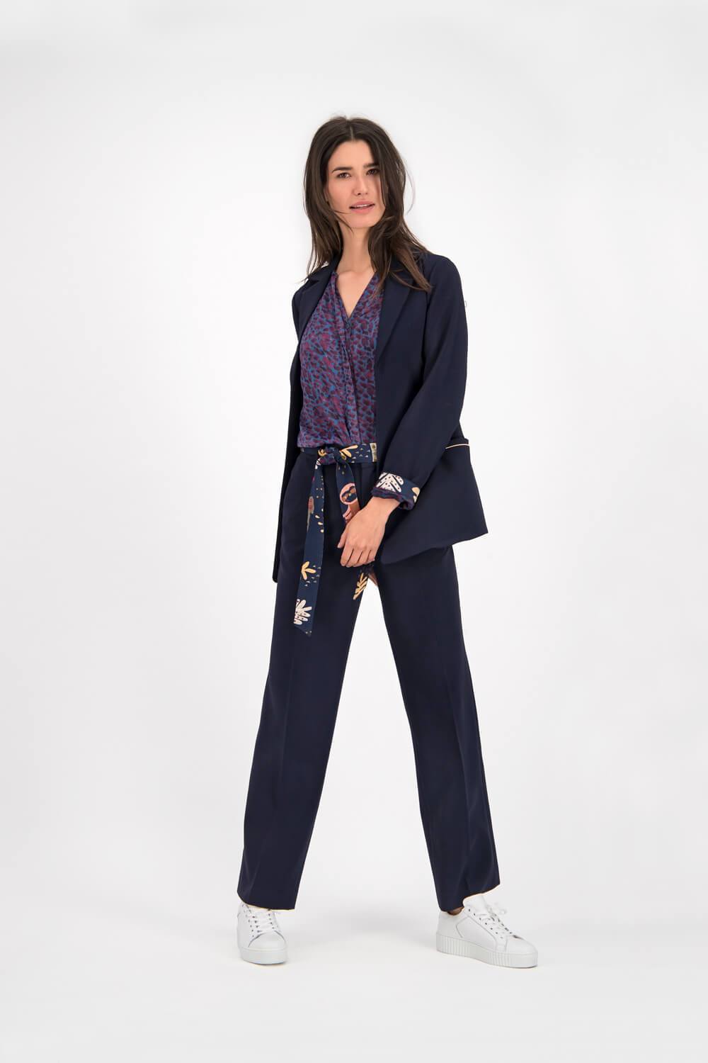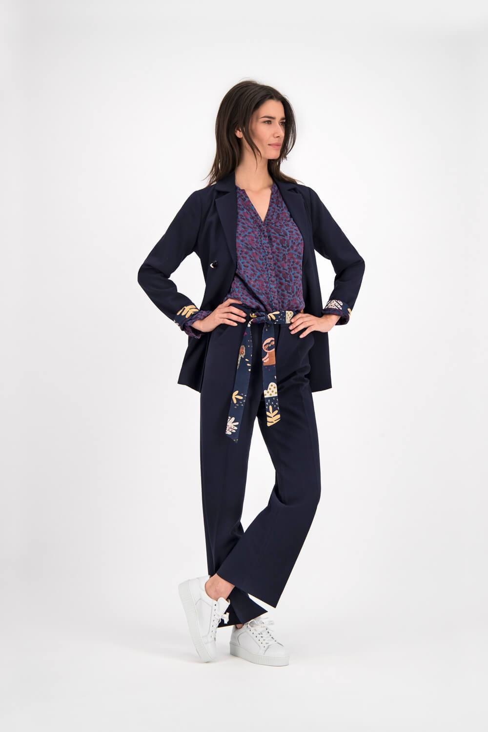 A comfortable dark blue pair of pants with a belt in the ‘Woodland’ print. These pants are the perfect combination with our ‘Bold Blue’ blazer.