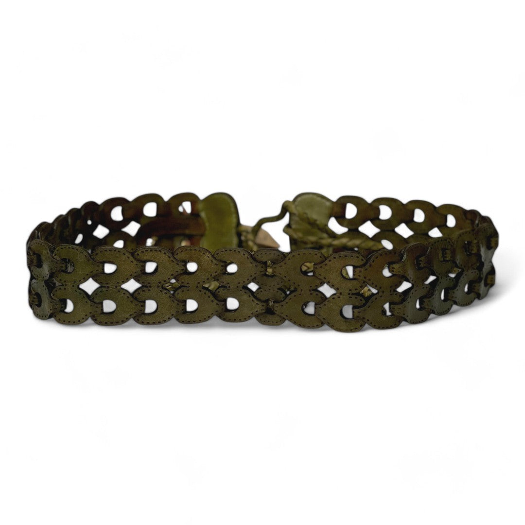 Made in white raw leather, dip dyed and tumbled to achieve a weathered effect – this leather will soften with wear. All marks are natural markings on the leather which is picked up by the dye.