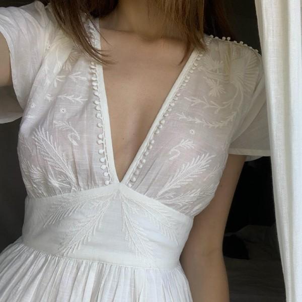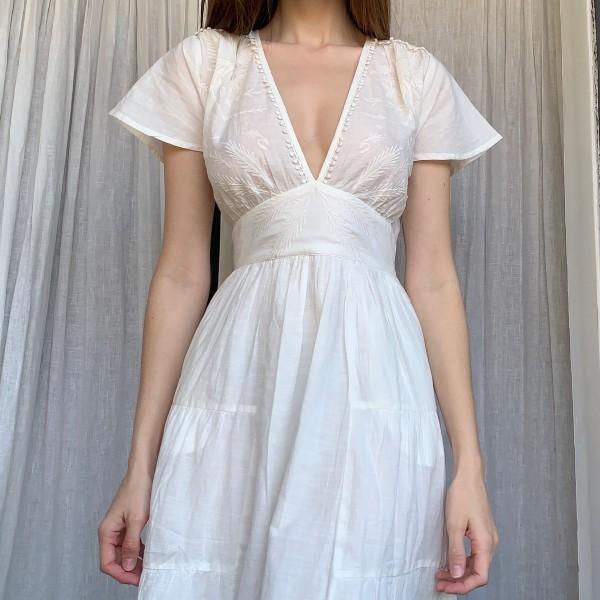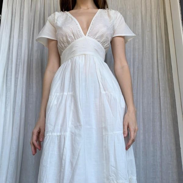 The vintage inspired embroidery at neckline & yoke make this dress uniquely beautiful and the perfect special occasion dress.
