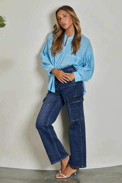 Creating the perfect vintage look with the Aalia Caleb Jean is easy. Our straight leg Jeans feature an extended high-rise with a skinny fit at the thigh and slightly kicks out below the knee.