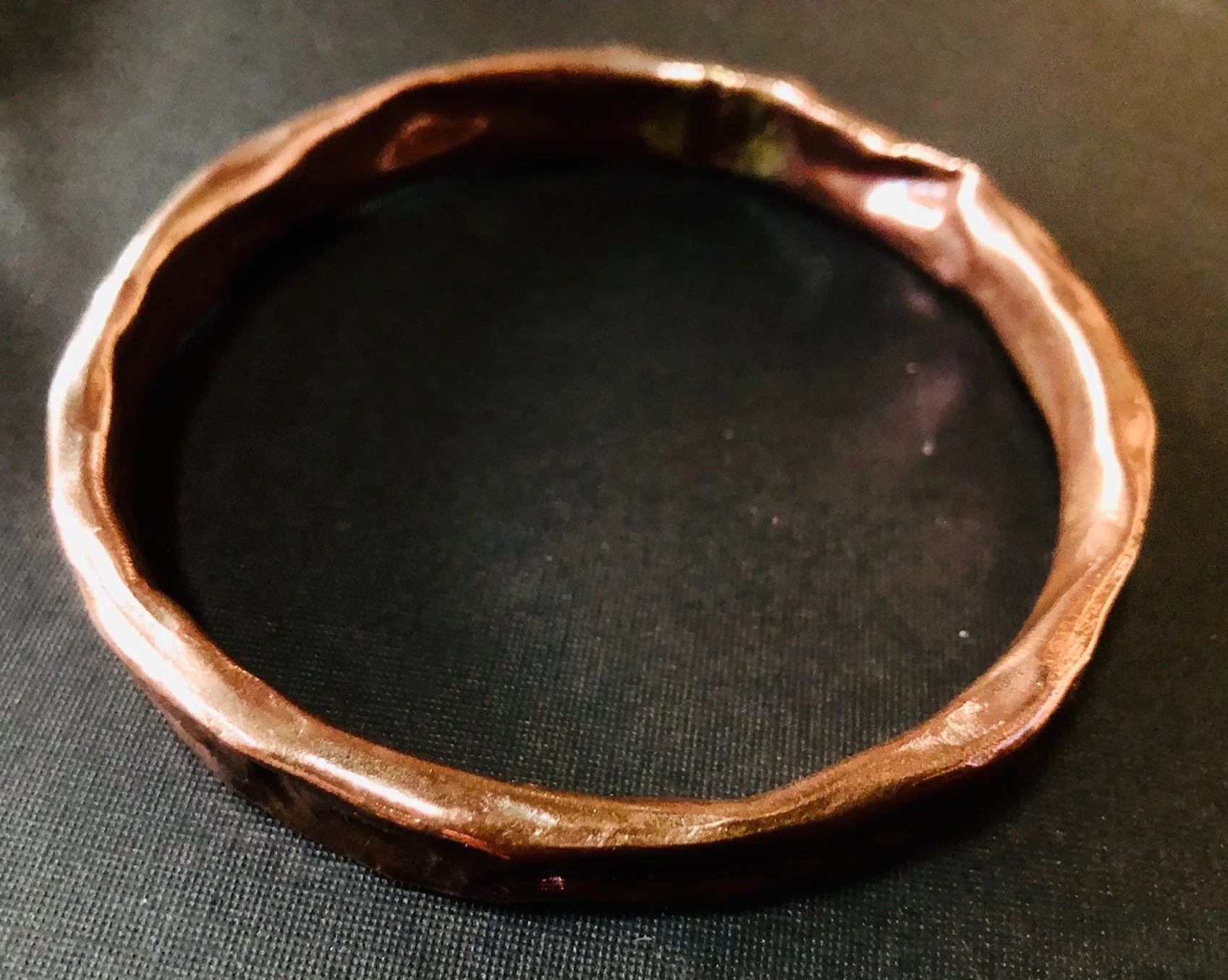 The V&M recycled copper/ brass handcrafted Scrunch Bangle, round in shape and comes in various sizes and additional charms.