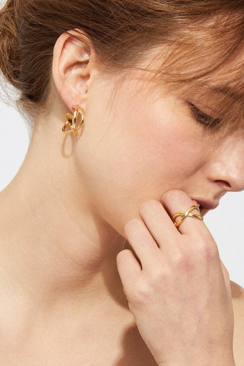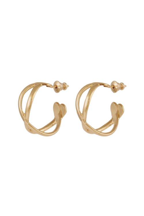 Luxuriously crafted hoop earrings, featuring two gold-plated bangles shaped and intertwined to captivate.