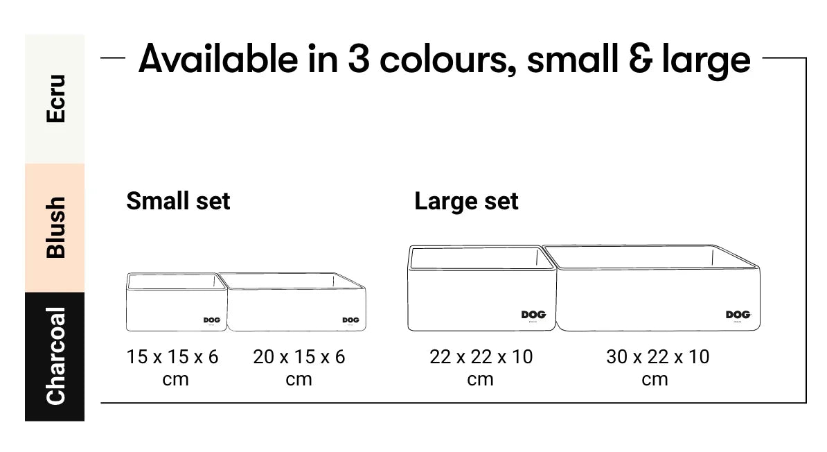 We know what you’re thinking, bowls are meant to be round. But what if they weren’t? What if they were *gasp* square? Designed to fit snugly into the corner of a room, where they can’t get knocked over or stepped on, where your dog can enjoy a drink or nibble in peace? And what if they were also 100% compostable and gentle on the earth? That’d be nuts, right? Available in 2 sizes.