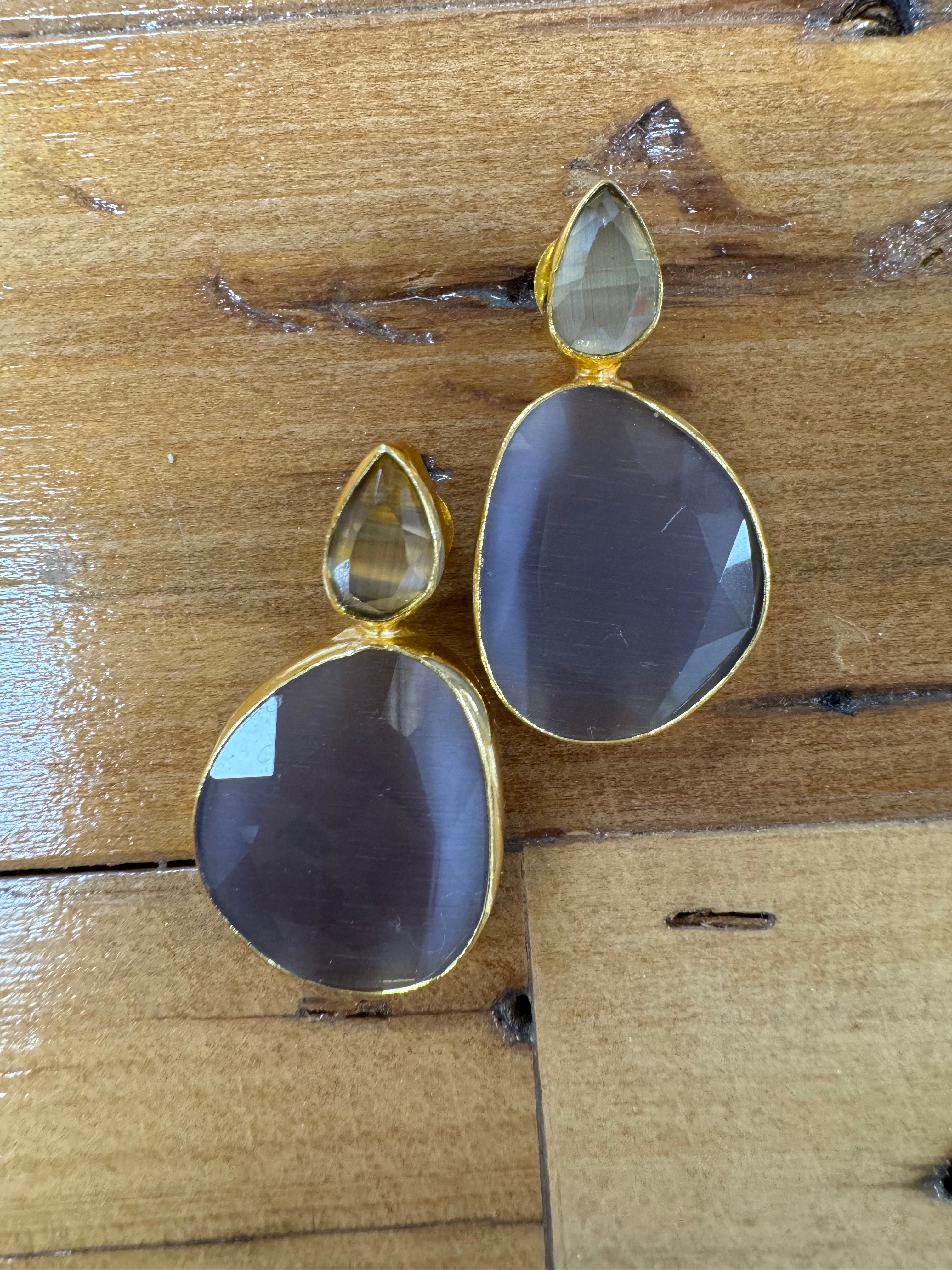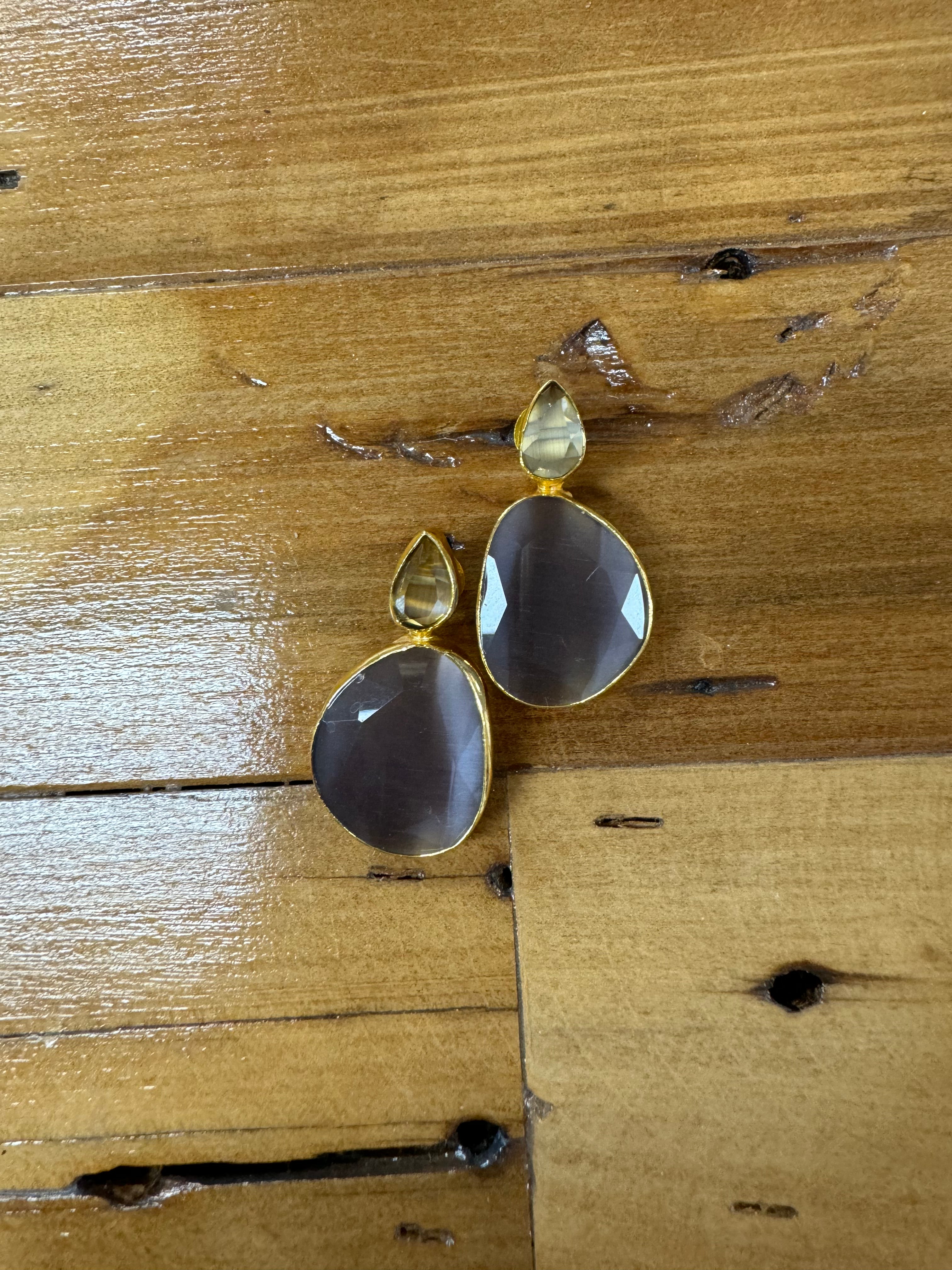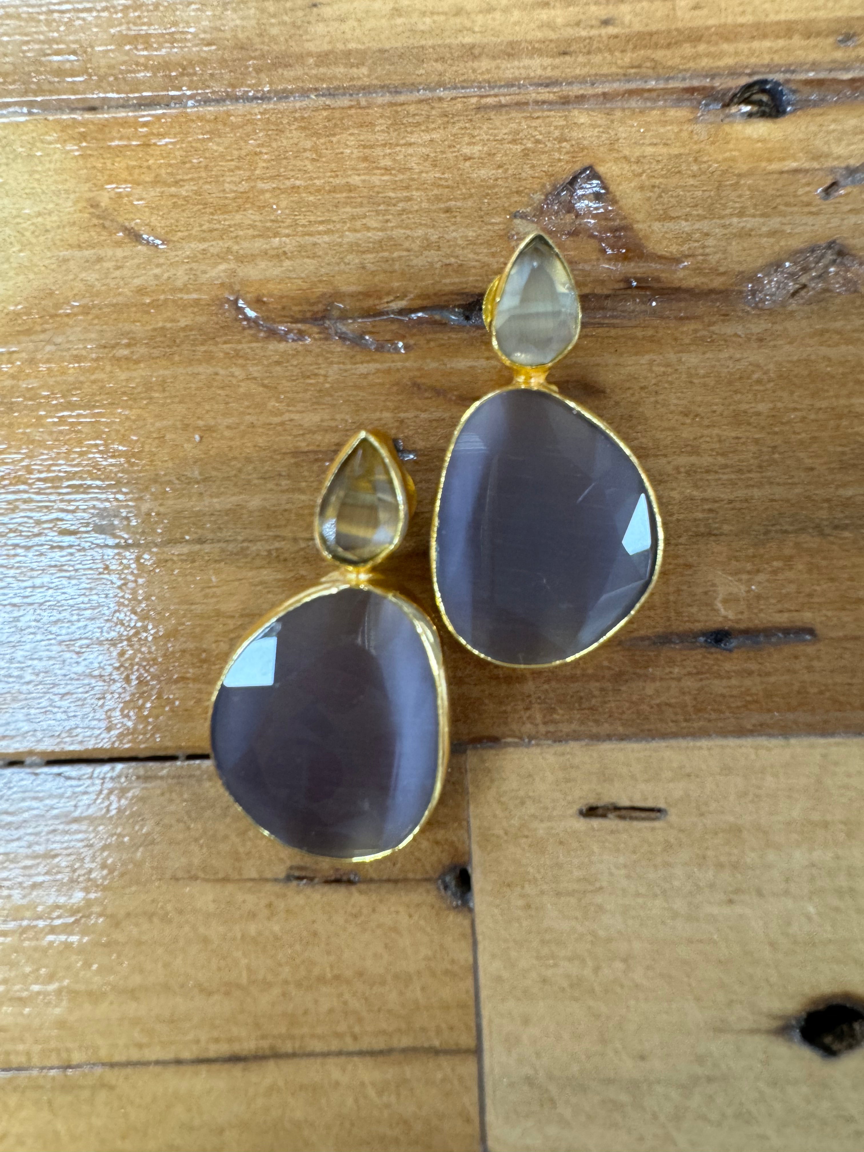 Assorted semi precious two stone drop earrings from Meshca Jewellery.  All handmade and due to their natural origin, gemstones and pearls may exhibit slight variations in color and size. This is what makes each heirloom piece truly unique, just like you.
