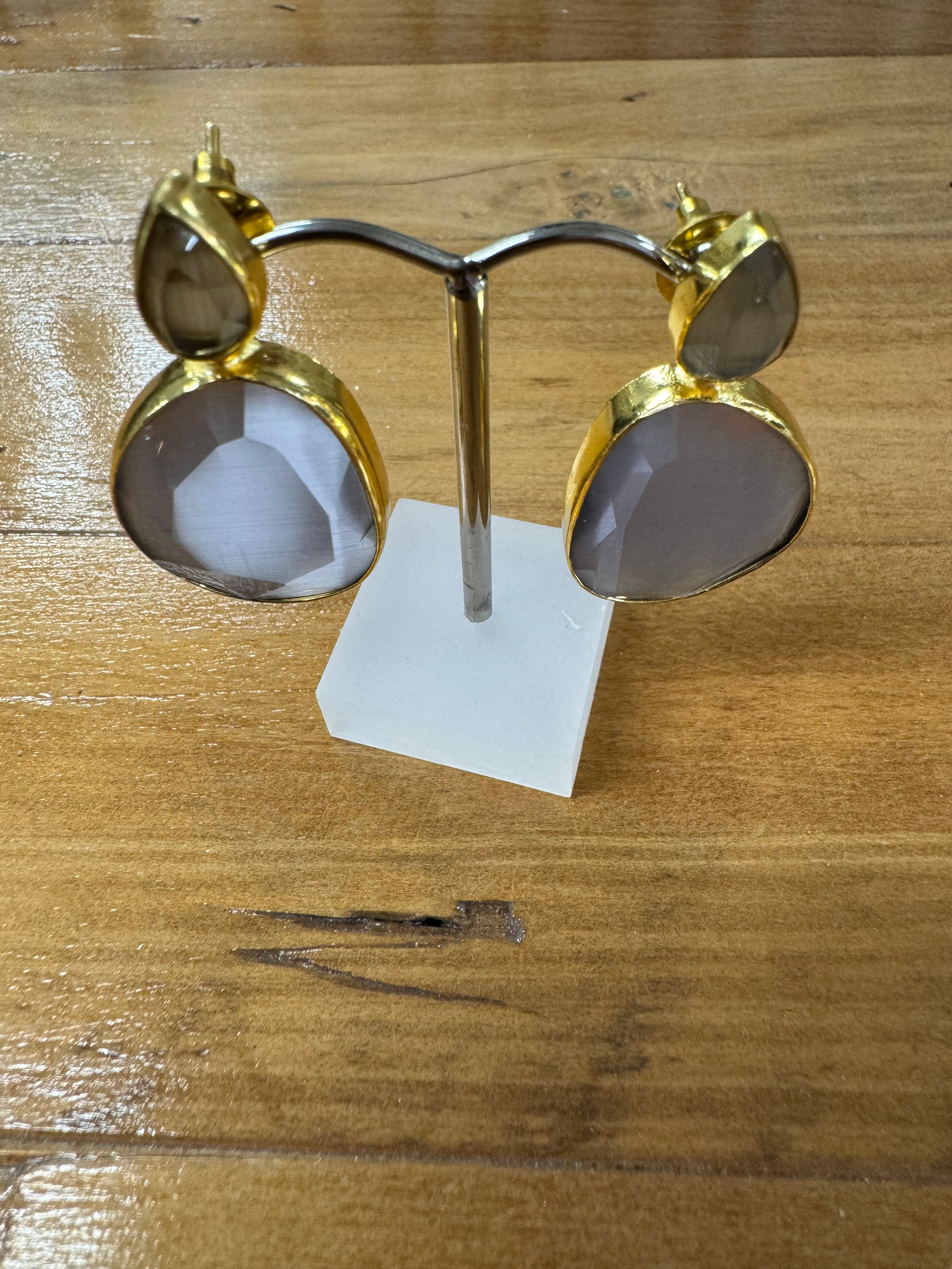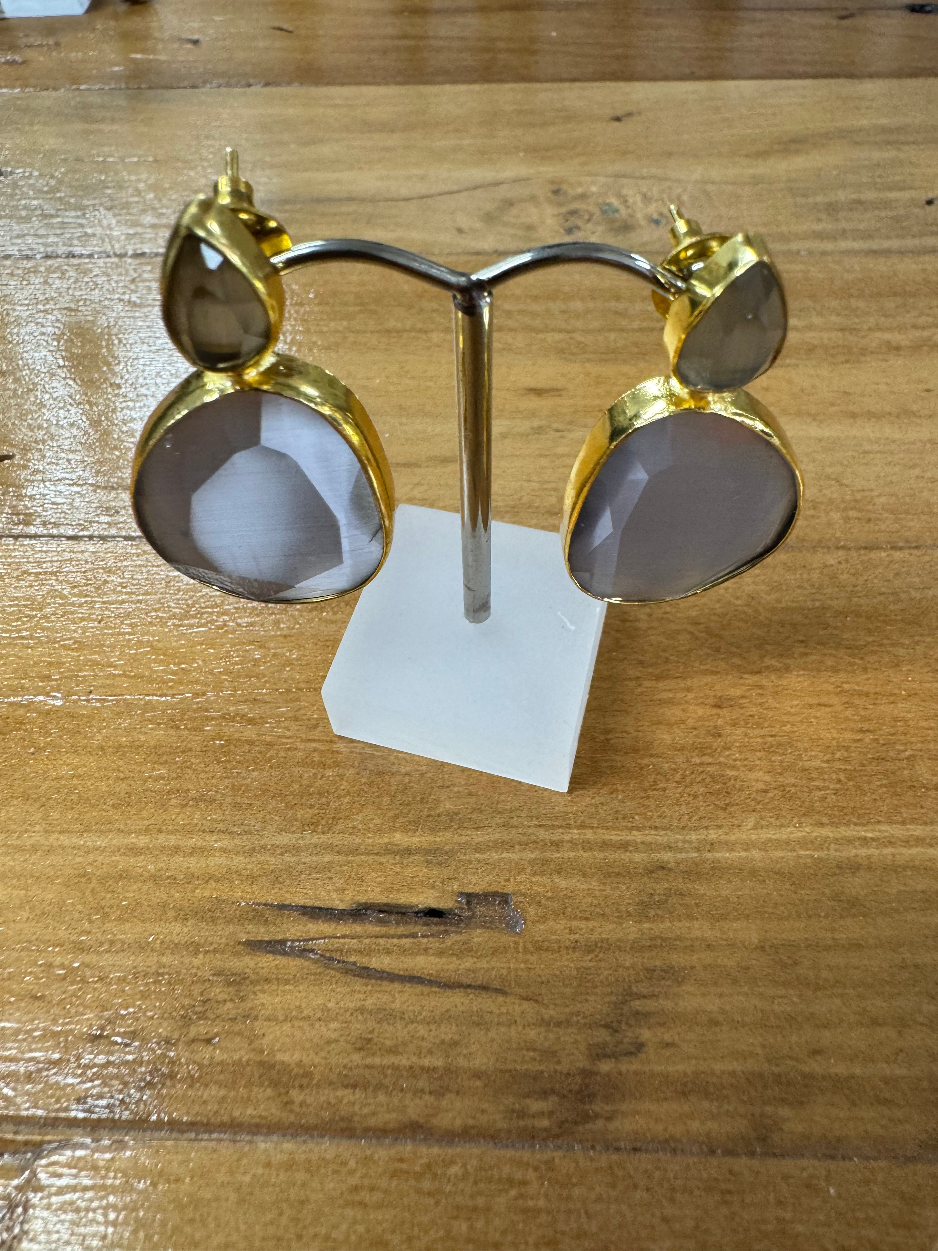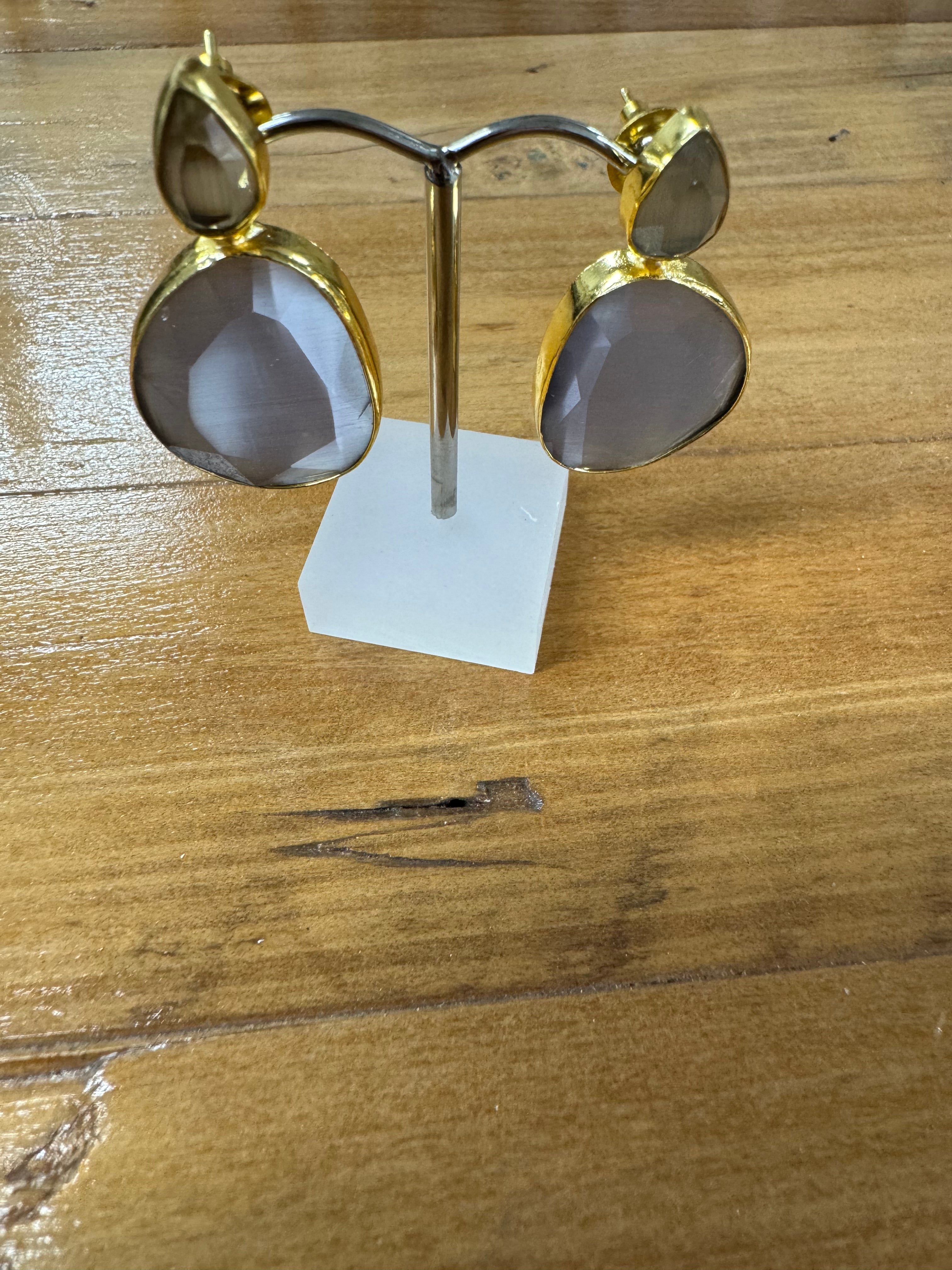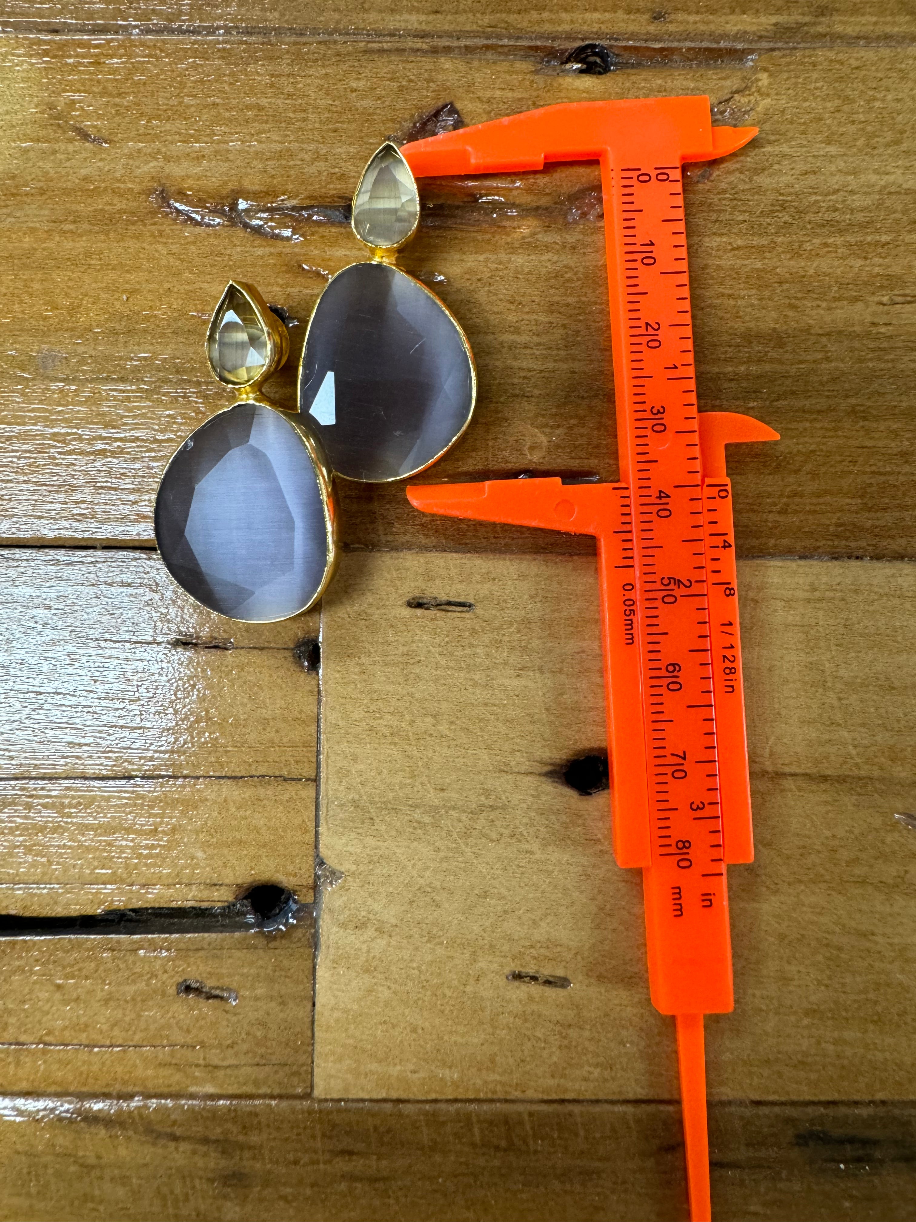Assorted semi precious two stone drop earrings from Meshca Jewellery.  All handmade and due to their natural origin, gemstones and pearls may exhibit slight variations in color and size. This is what makes each heirloom piece truly unique, just like you.