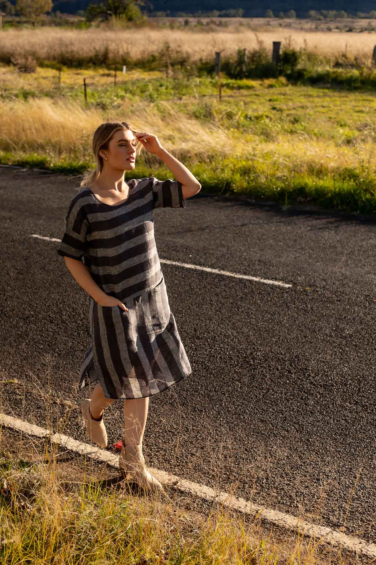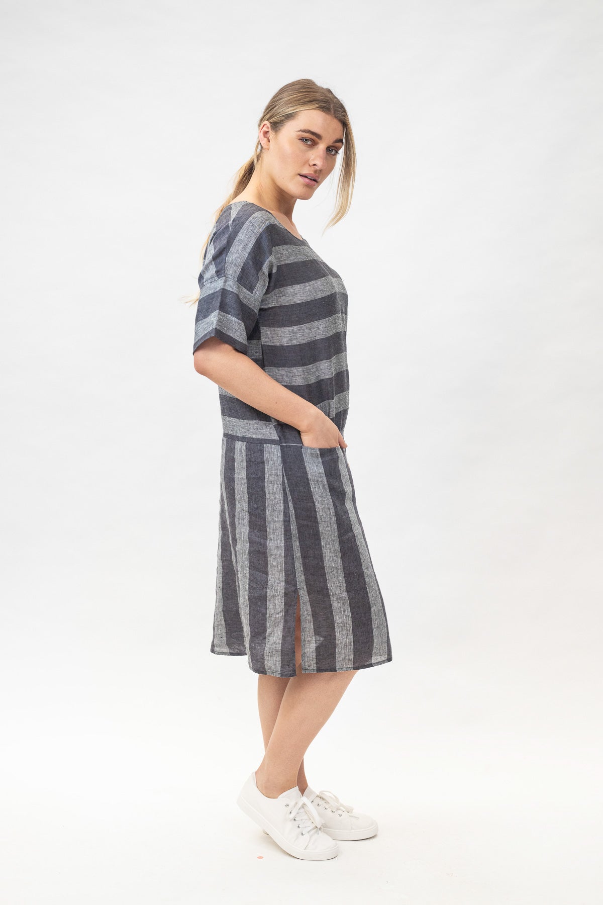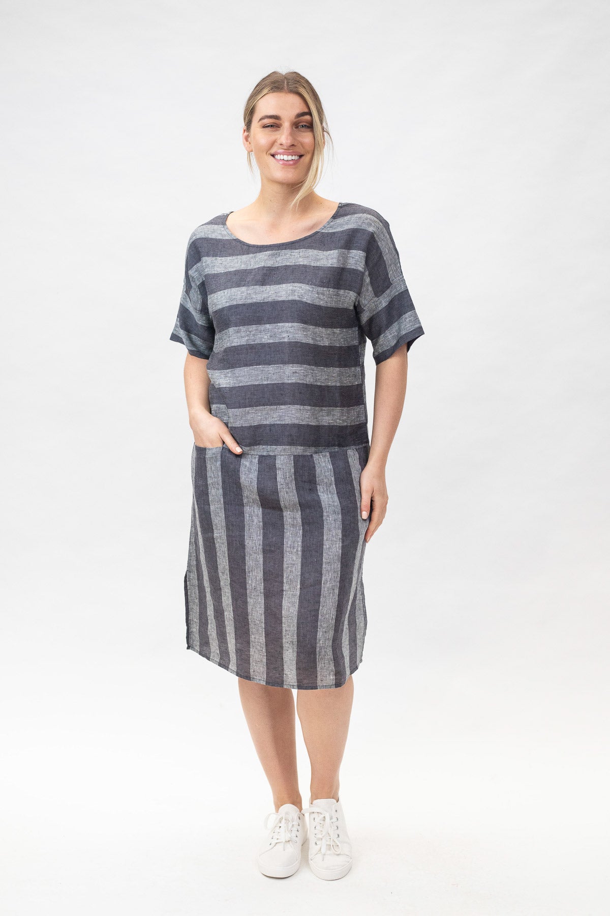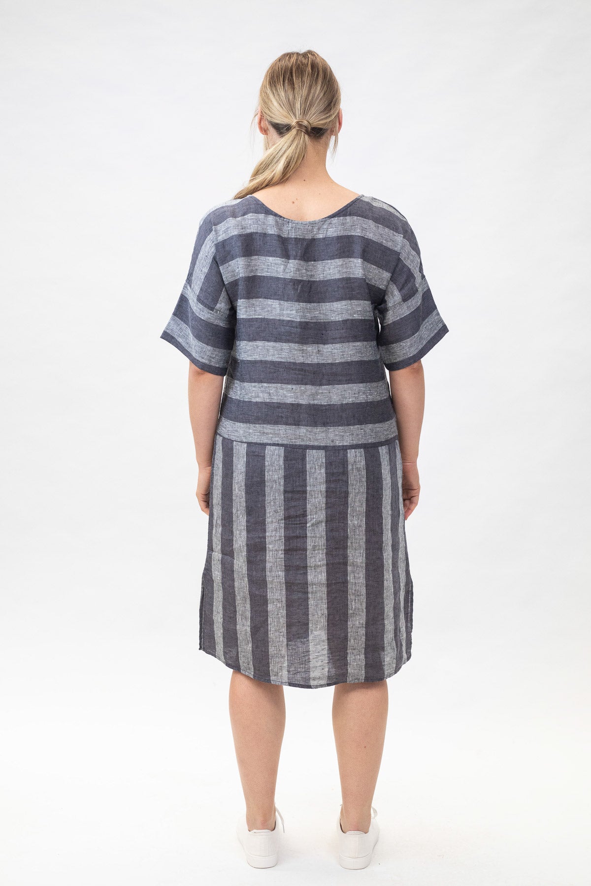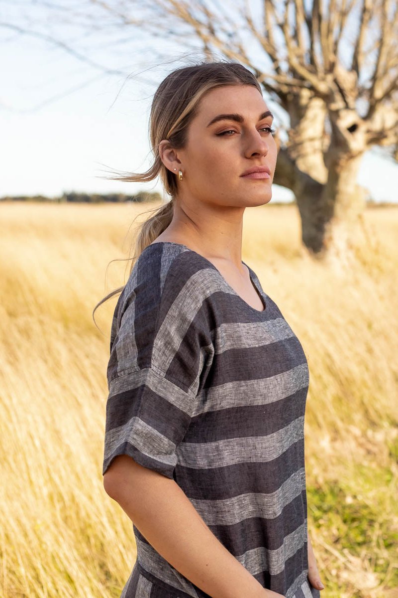 GA280 Drop Hem Dress in Slate Stripe